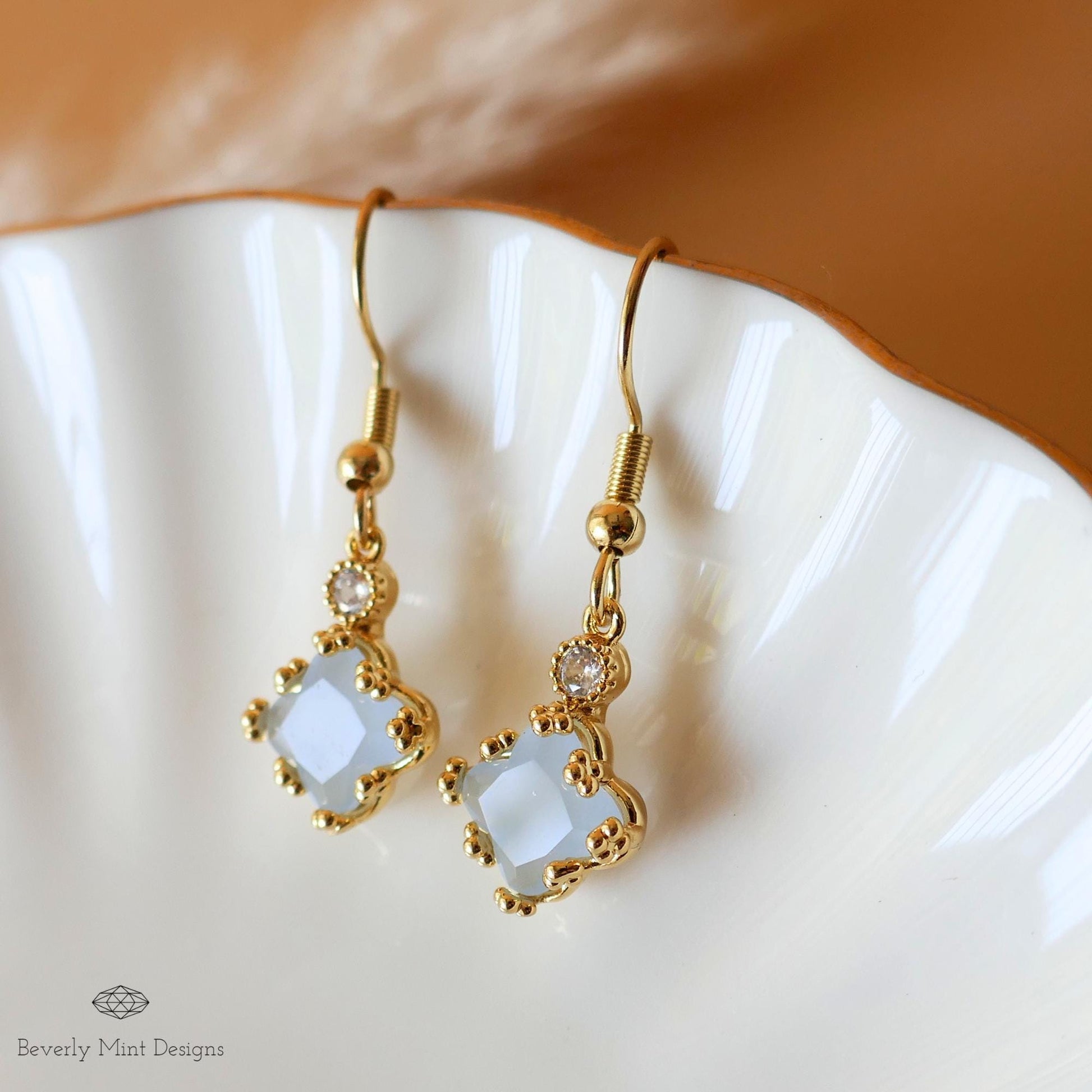 18K Gold Dainty Charm Earrings, Light Blue Earrings, Pale Blue Earrings, Drop & Dangle Earrings, Bridesmaids Gift, Something Blue Earrings