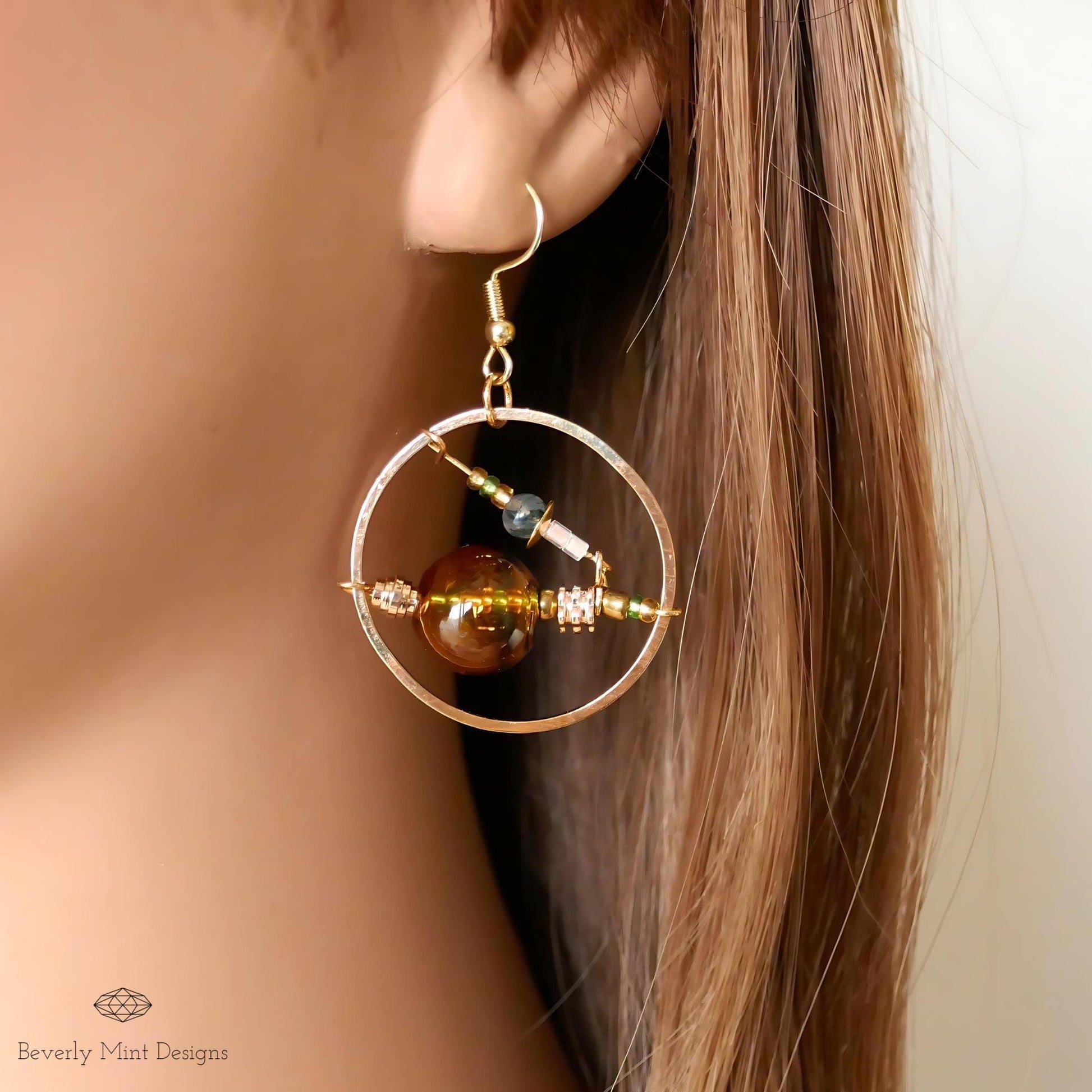 18K Gold Retro Earrings, Unique Drop Earrings, Yellow Glass Bubble Earrings, Unique Dangle Earrings, Long Drop Earrings, Gift For Her