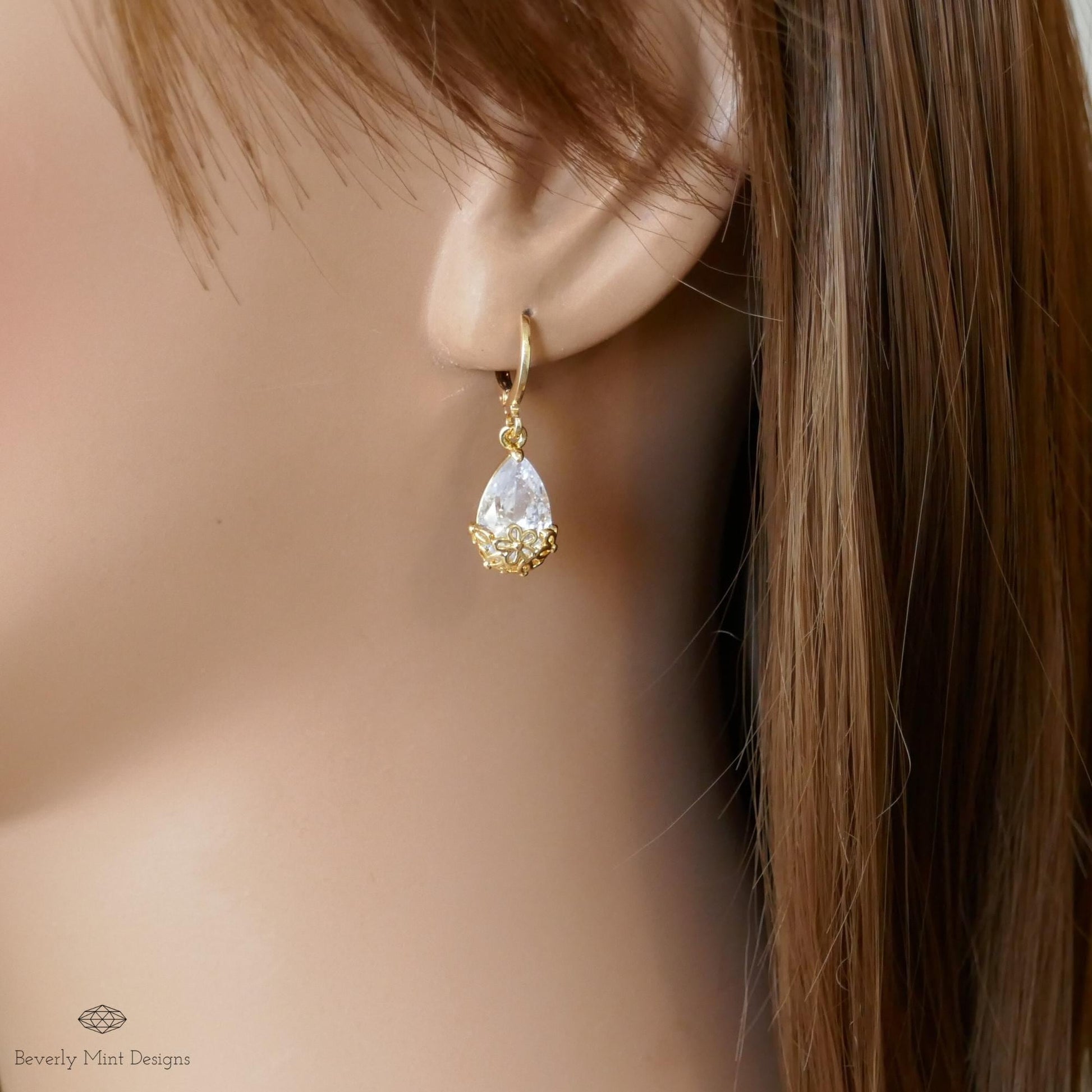 18K Gold Teardrop Dangle Earring , Cubic Zirconia Drop Earrings, Gold Dangle Earrings, Waterdrop Earrings, Wedding, Bridesmaid Gift