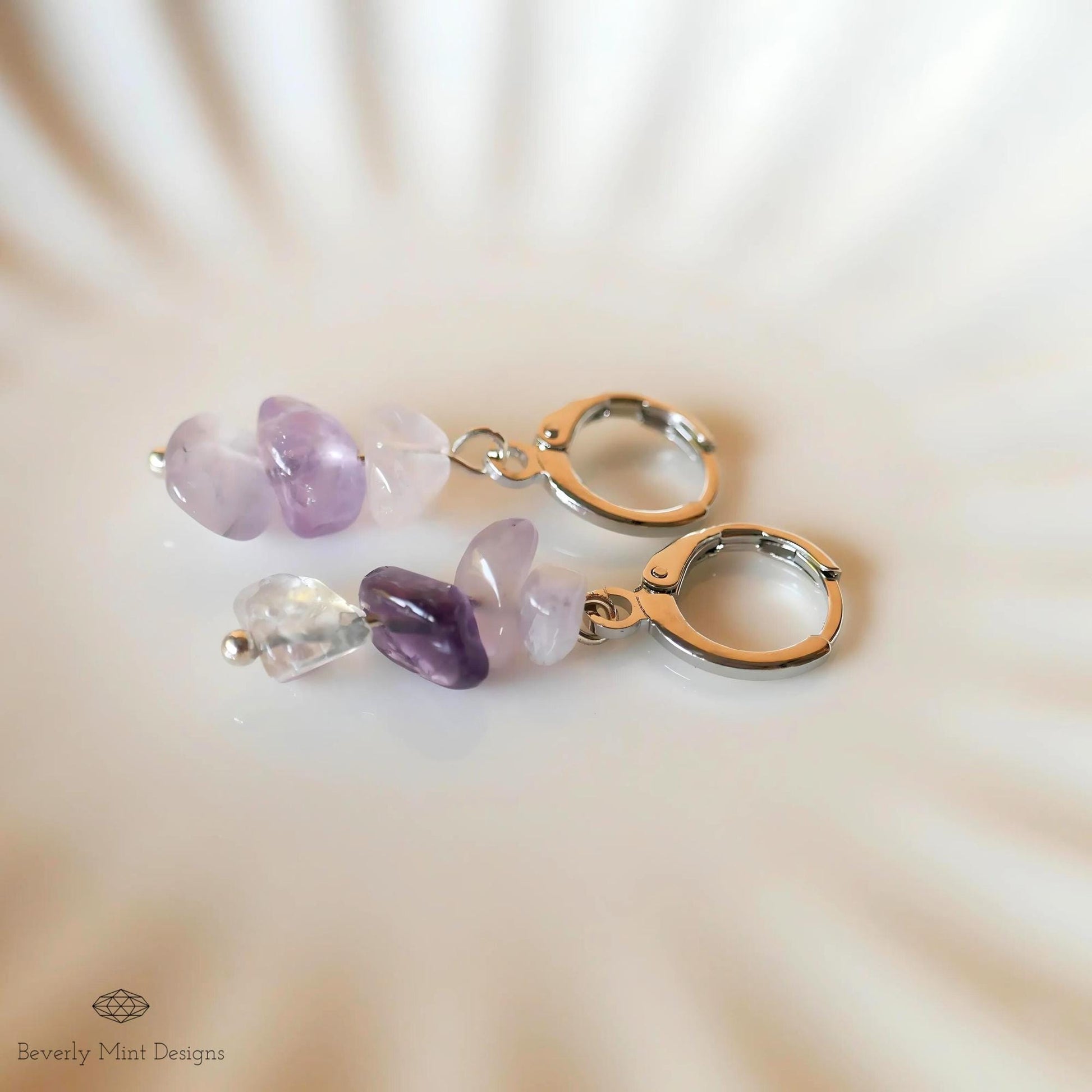 Amethyst Dangle Earrings, Purple Earrings Boho Jewelry, Chakras Stones , Irregular Natural Stone Earrings, Birthstone for February, Gift
