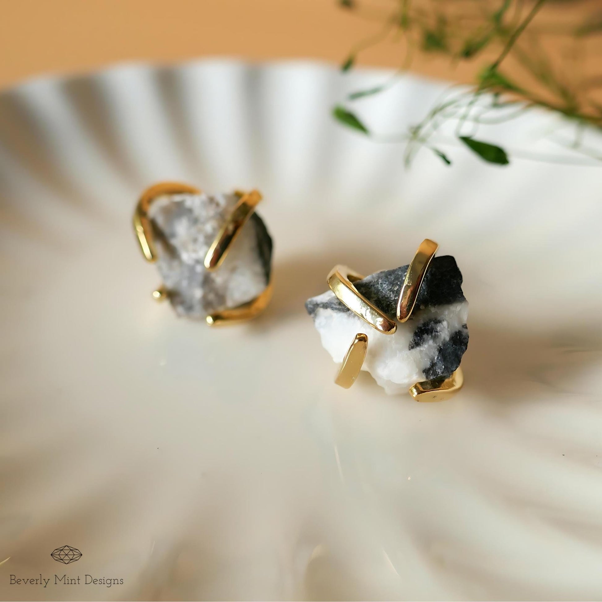 ・Material: 18K gold plated / brass (Post), Black and White Zebra Stone