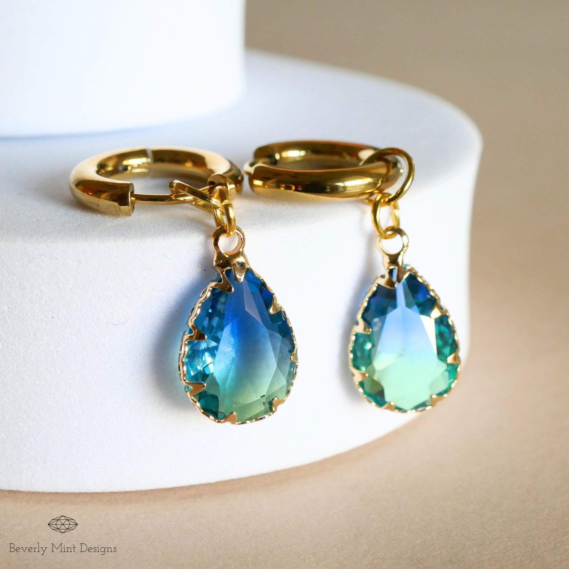 Blue and Green Teardrop Earrings, Blue Ombre Gemstone Drop Earrings, Elegant Teardrop Earrings, Handmade Gradient Crystal Drop Earrings