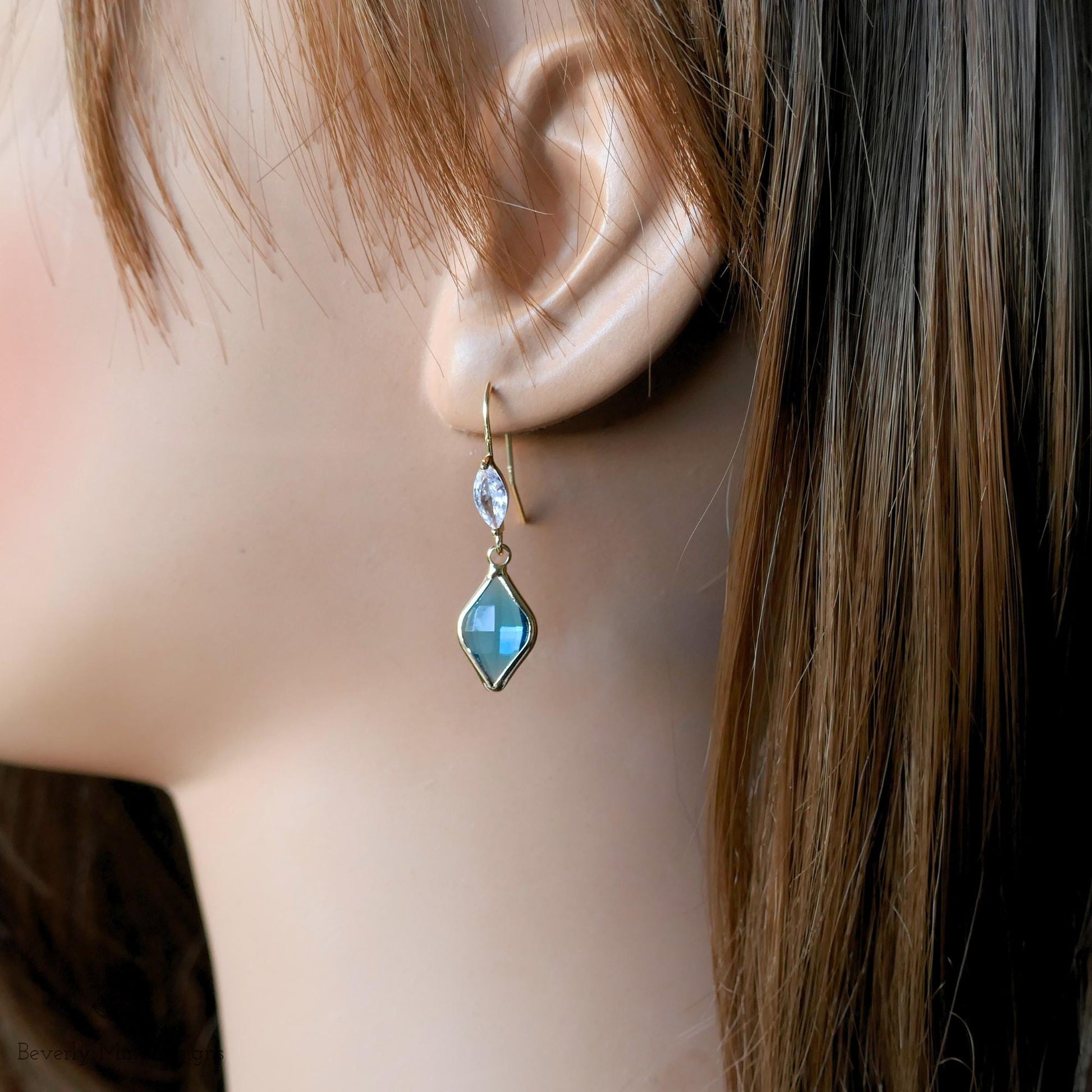 Blue Teardrop Crystal Earrings, Gold Marquise Dangle Earrings, Cubic Zirconia Handmade Jewelry, Gift for Mother, Something Blue Earrings