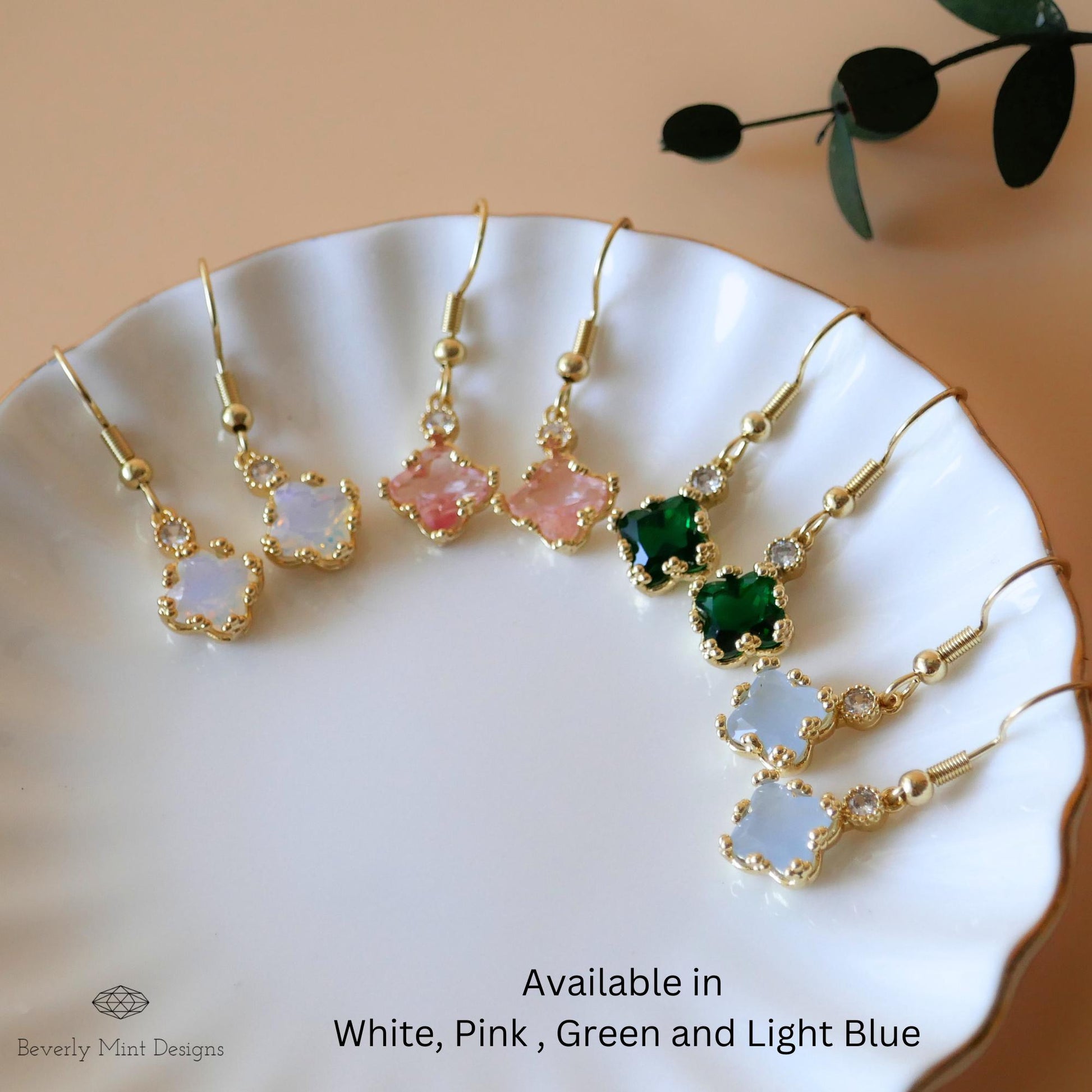 Emerald Green Small Charm Earrings, Green Earrings, 18K Gold Drop & Dangle Earrings, Minimalist Jewelry, Bridesmaids Gift, Anniversary Gift
