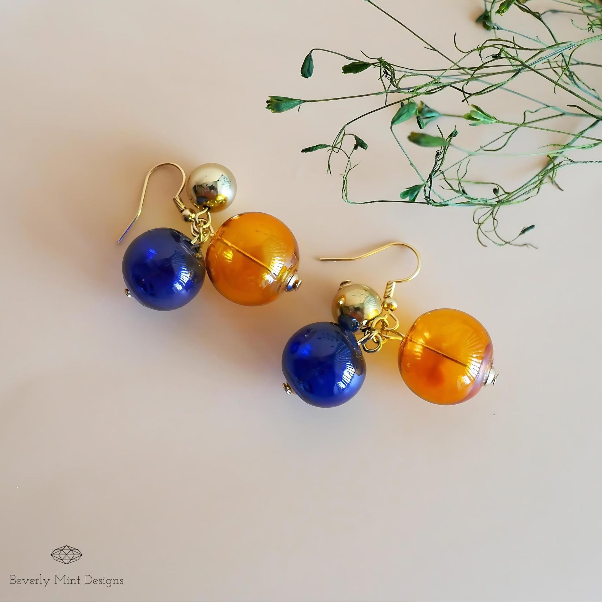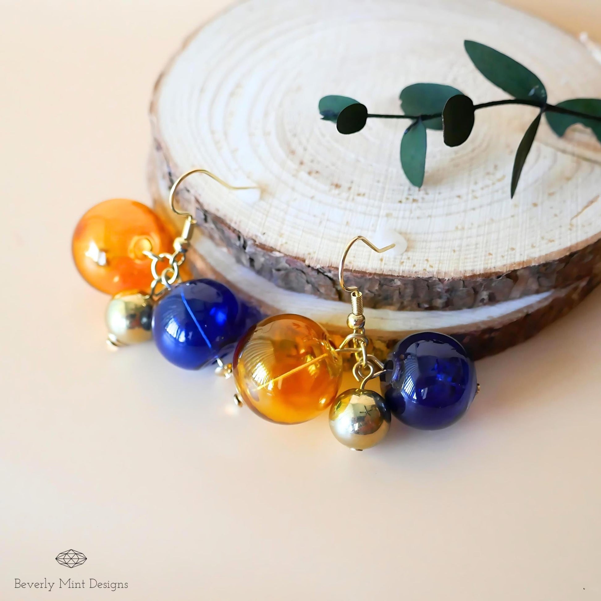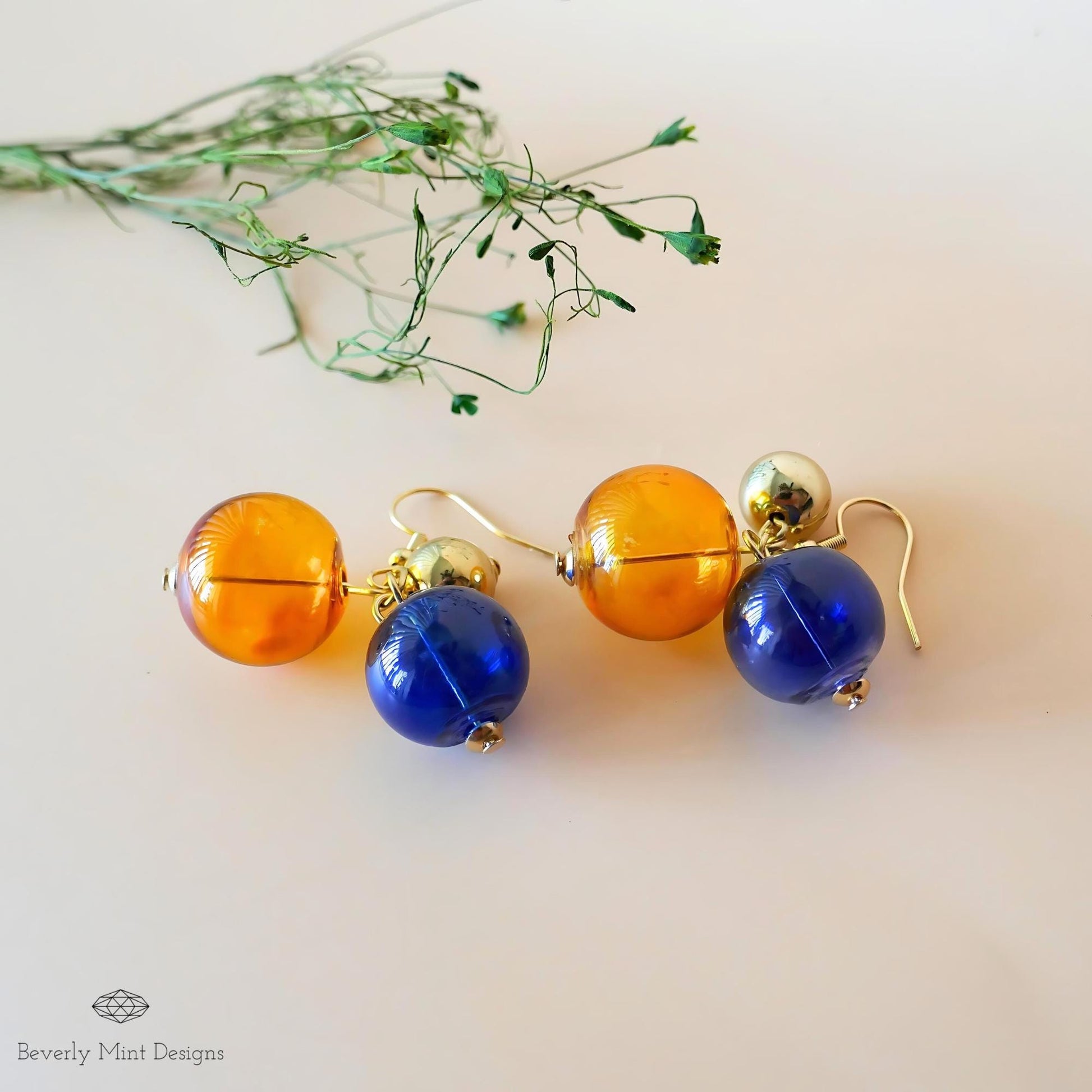 Glass Ball Dangle Long Earrings, 18K Gold Unique Glass Ball Earrings, Dangle & Drop Earrings, Unique Earrings, Colorful Earrings