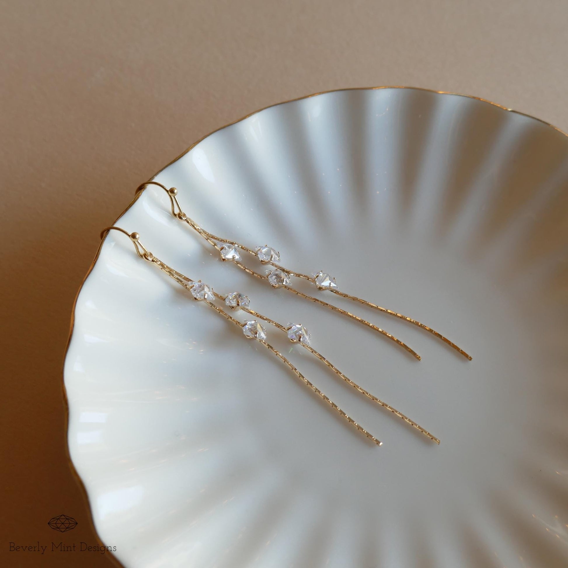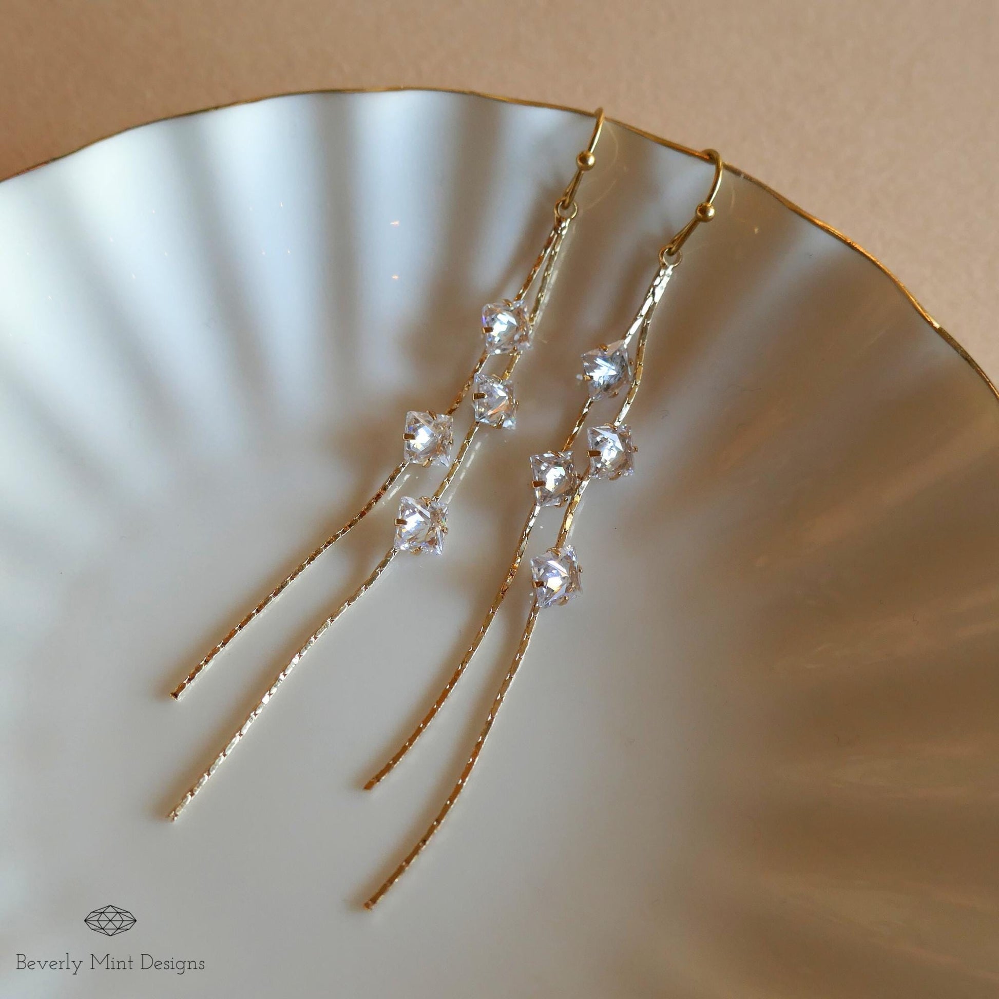 Gold Crystal Long Earrings, Long Dangle Earrings for Women, Minimalist, Elegant Drop Earrings, Wedding Jewelry, Bridesmaids Gift