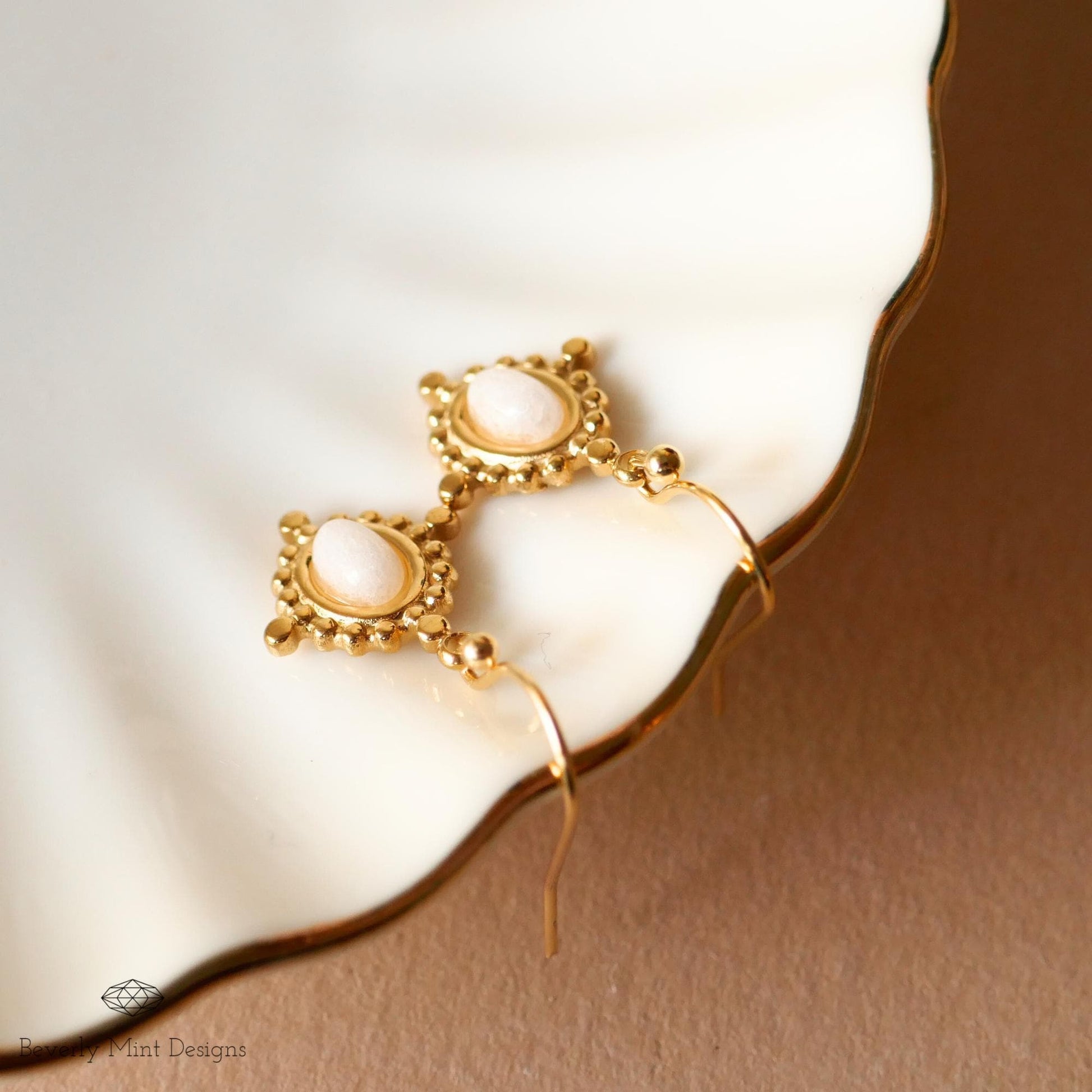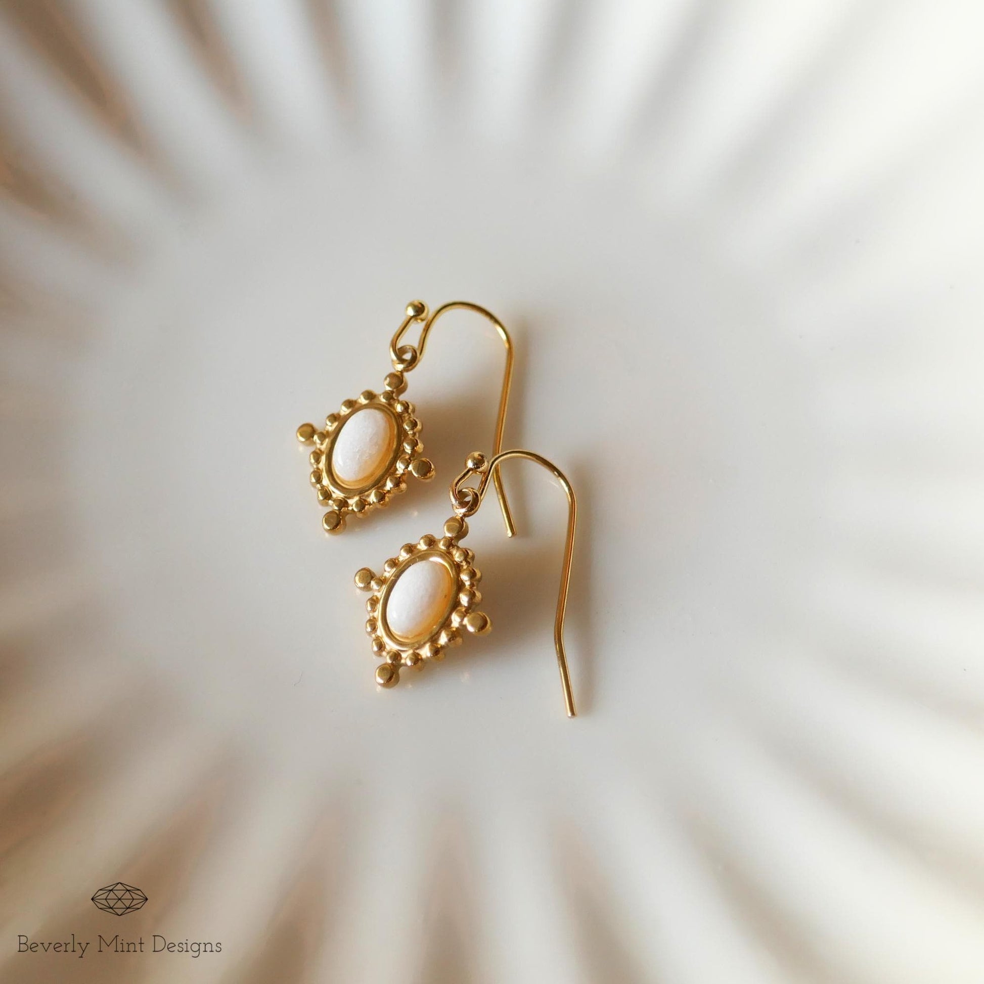 Gold Drop Earrings with White Gemstone, Vintage-Inspired Dangle Earrings, Elegant Jewelry for Weddings, Parties, Everyday Wear
