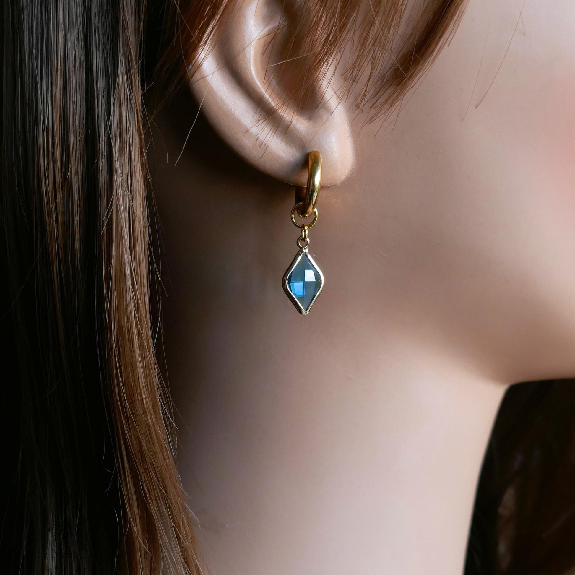 Gold Huggie Earrings with Blue Crystal Charm , Minimalist Drop Earrings ,Blue Stone Earrings for Women , Handmade Gift Jewelry, Gift For Mom