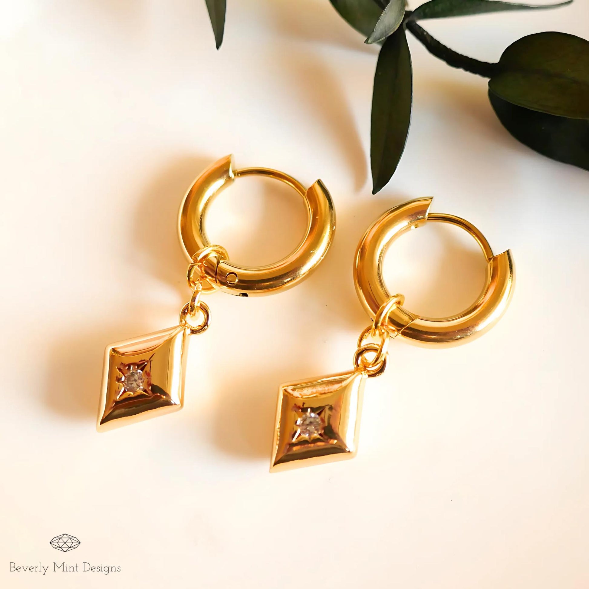 Gold Huggie Earrings with Geometric Dangle Charms – Minimalist Jewelry, Modern Hoop Earrings, Chic Gold Hoop Jewelry, Gift for Her