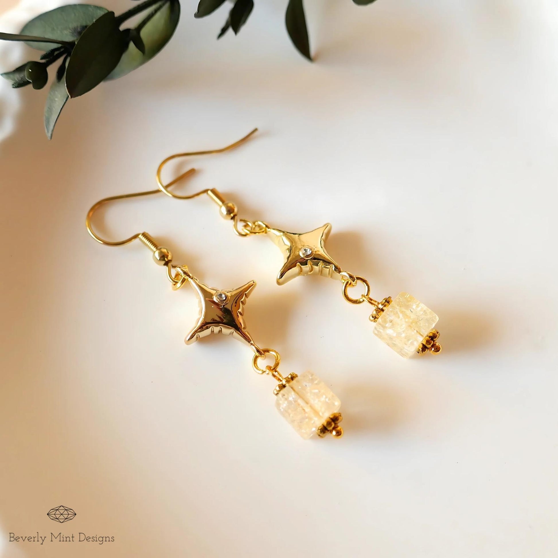 Gold Star Dangle Earrings with Gemstone Beads - Boho Chic Jewelry, Handmade Statement Earrings, Gift for Her, Gift For Her