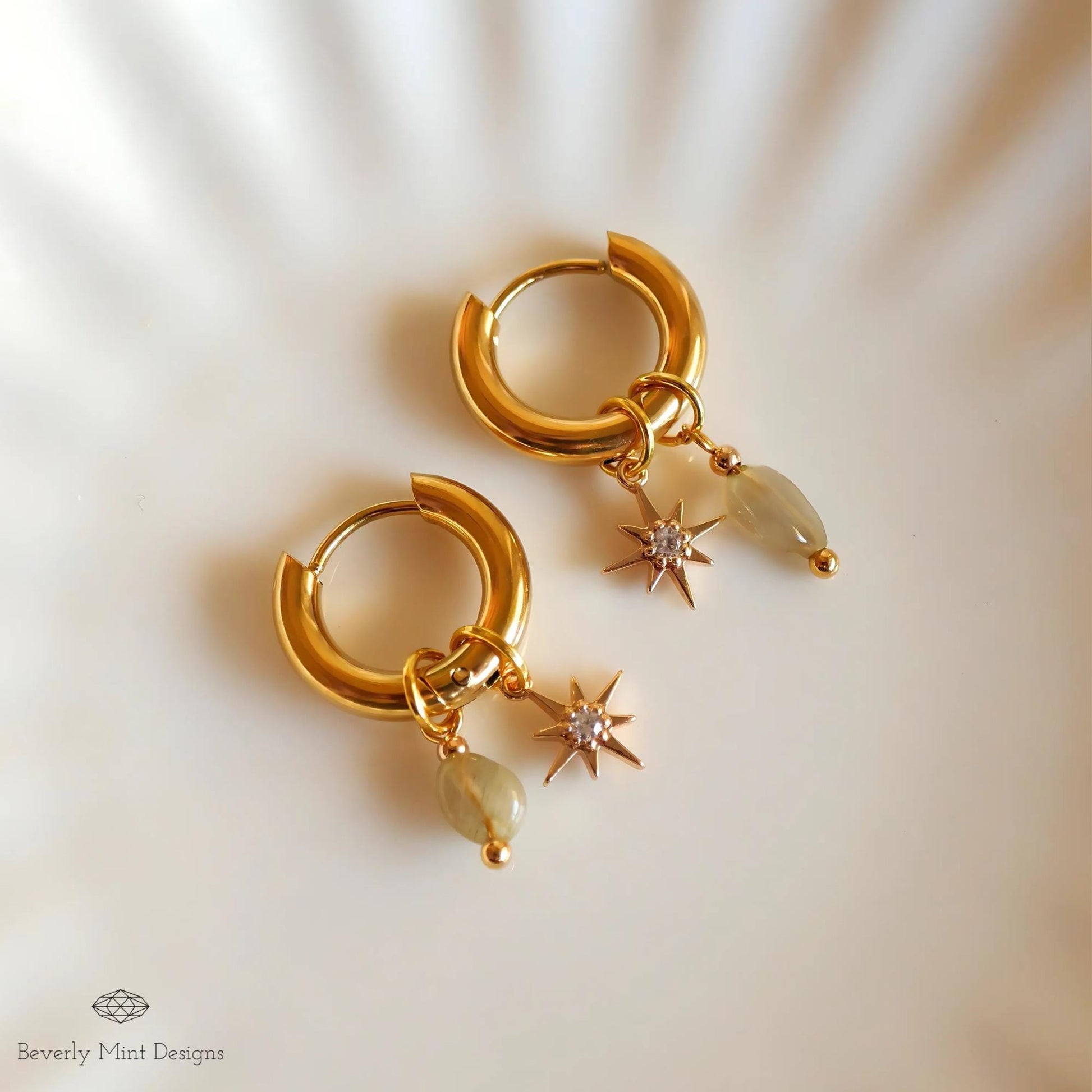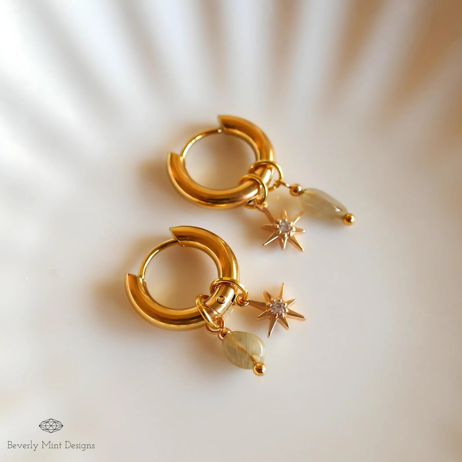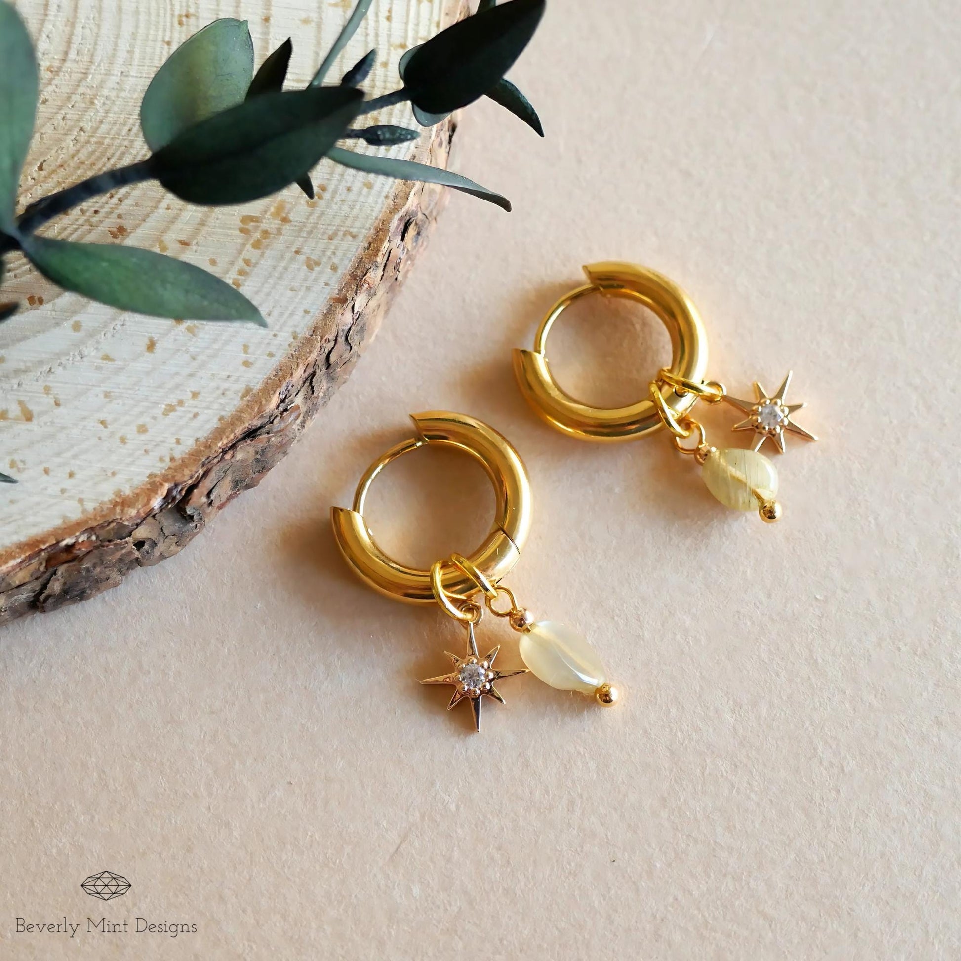 Gold Star Hoop Earrings, Minimalist Dangle Hoops, Celestial Statement Jewelry, 18K Gold Huggie Earrings, Chunky Huggie Hoops, Unique Gift