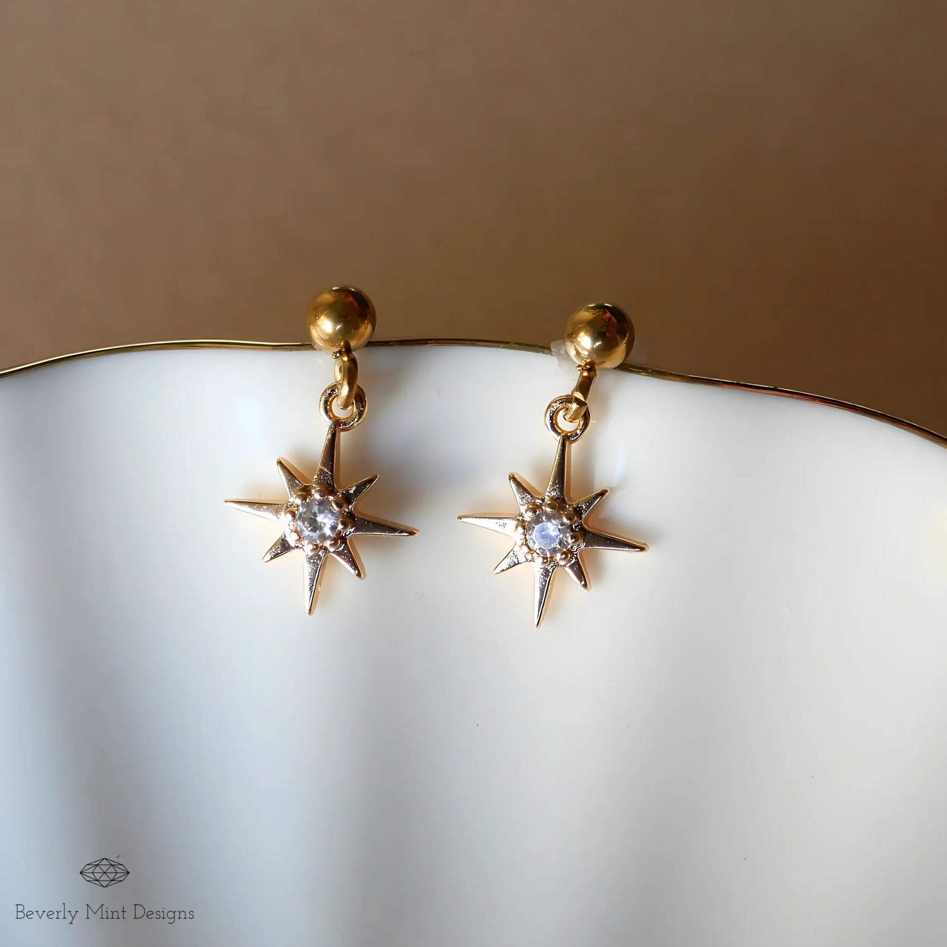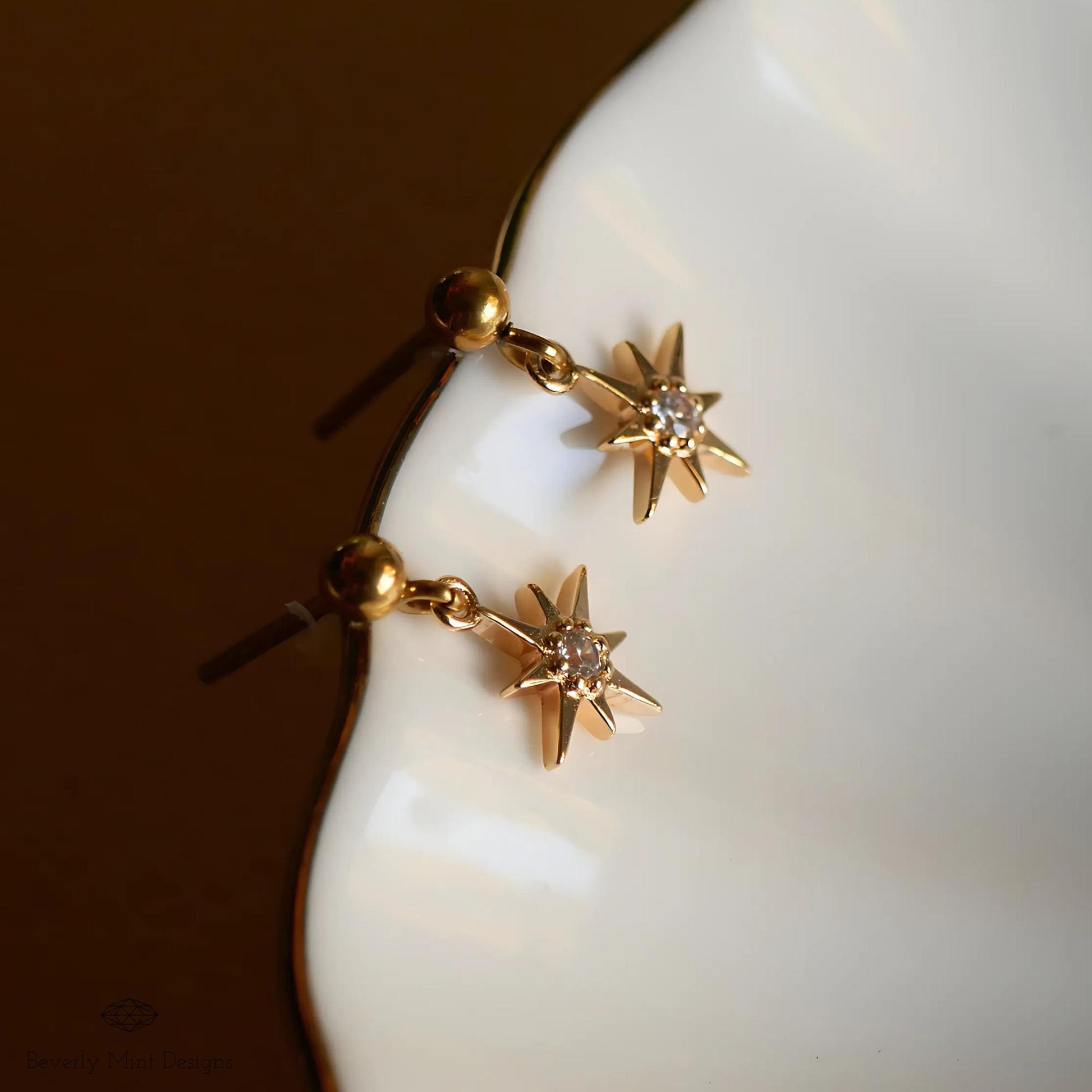 Gold Starburst Dangle Earrings, Minimalist Star Jewelry, Celestial Drop Earrings, Dainty Gold Earrings, Gift for Her, Gift For Her