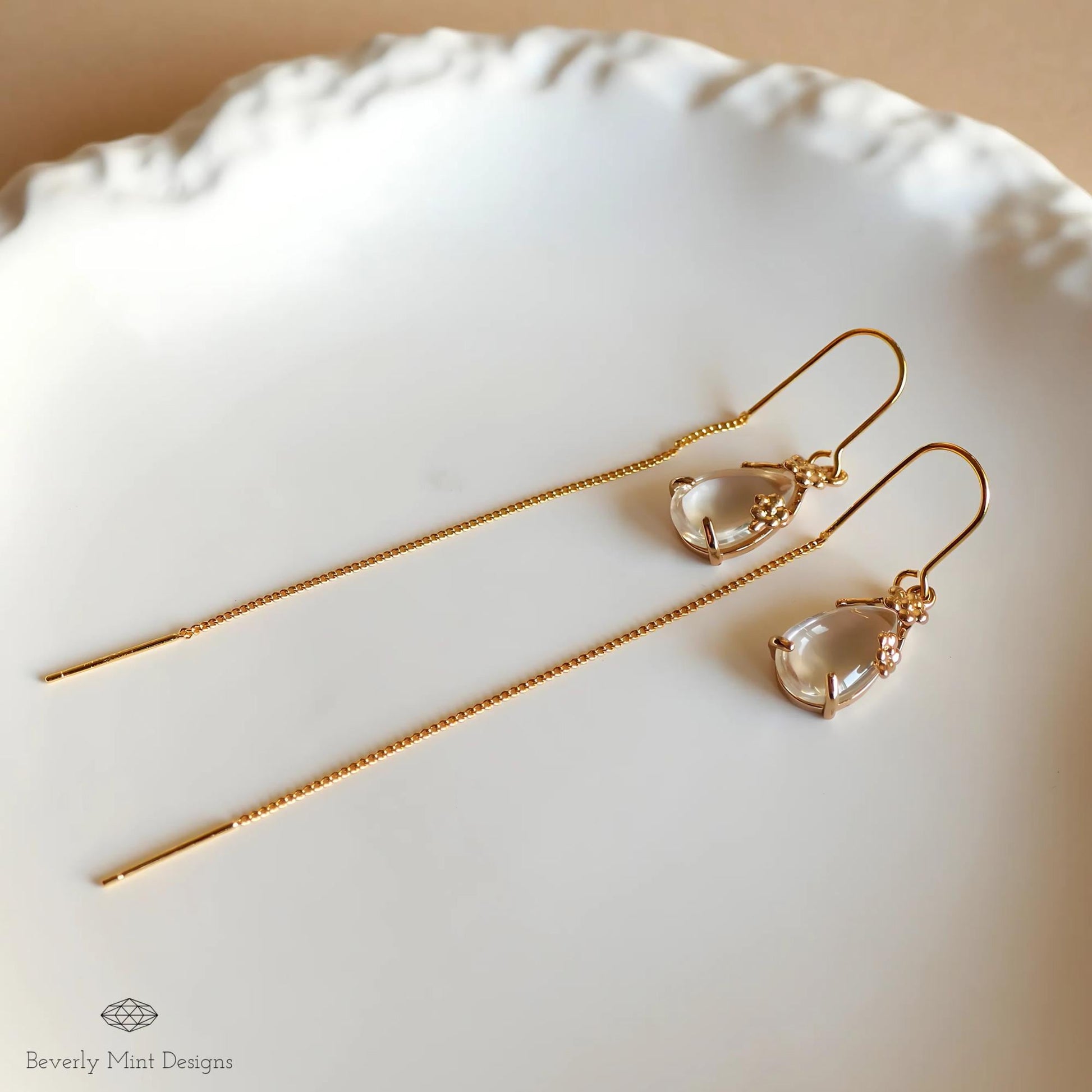 Gold Threader Earrings, Teardrop Dangle Earrings, Floral Long Chain Earrings, Minimalist Jewelry for Women, Gift for Her, Gift For Her