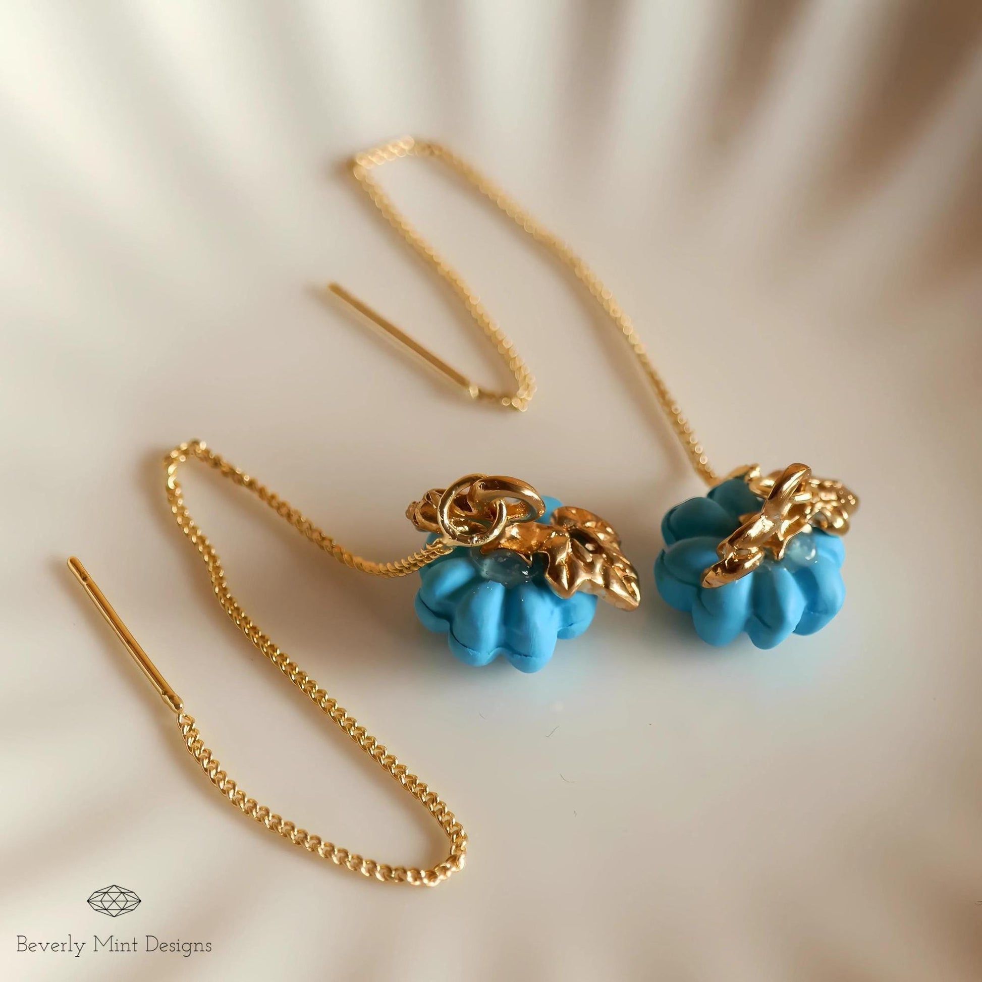 Halloween Pumpkin Earrings, Cute Pumpkin Earrings, Blue Earrings, Fun Halloween Accessories, Gift for Her, Gift For Her