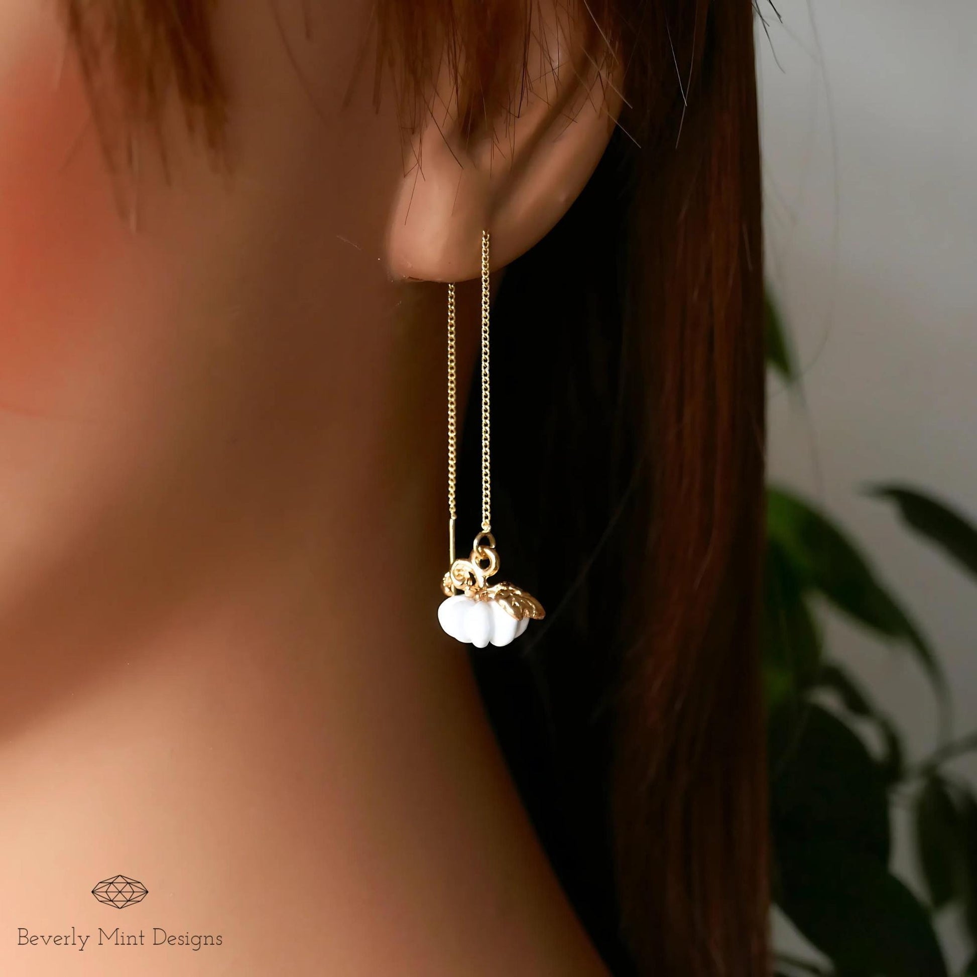 Halloween Pumpkin Earrings, Cute Pumpkin Earrings, White Earrings, Fun Halloween Accessories, Gift for Her, Gift For Her