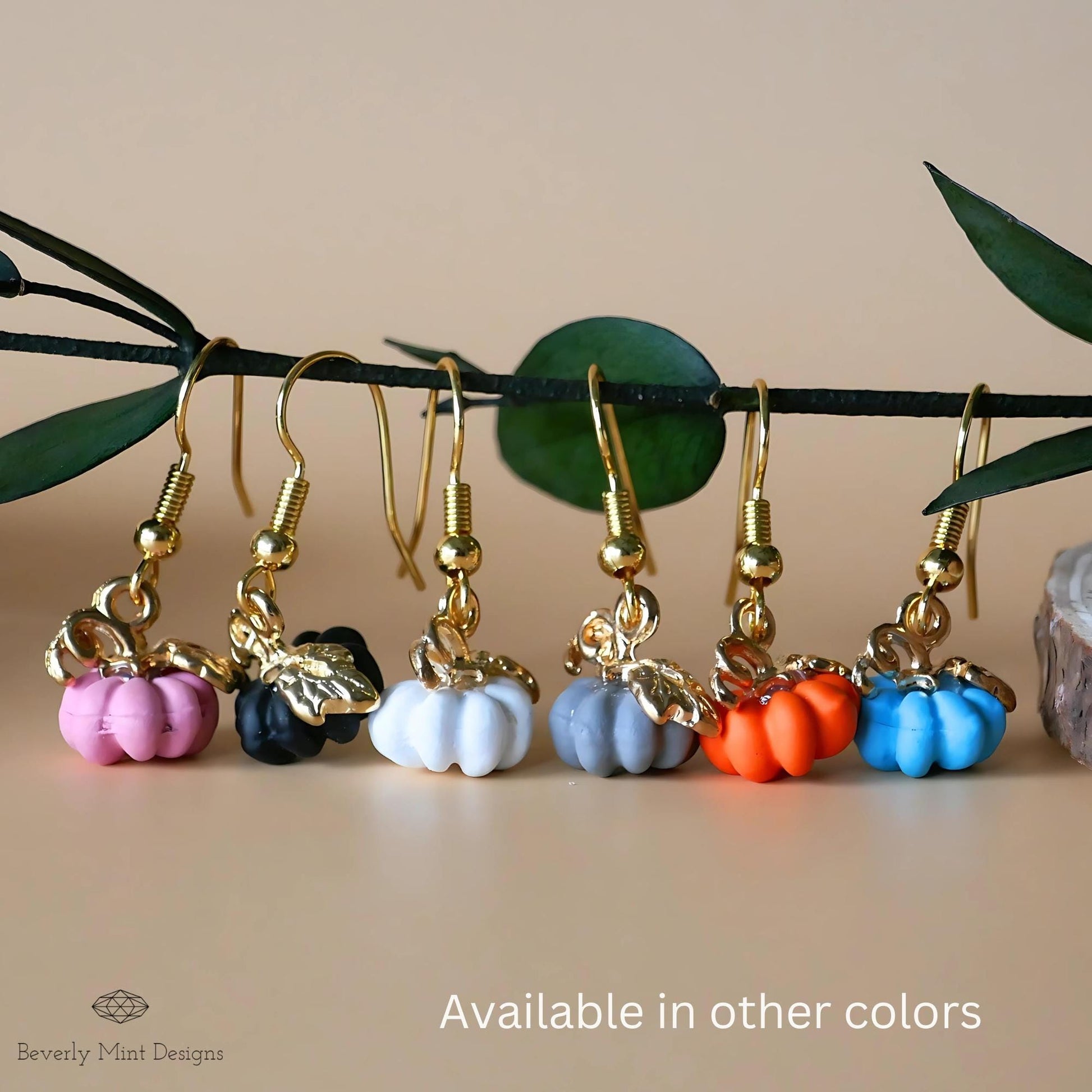 Halloween Pumpkin Earrings, Tiny Cute Blue Pumpkin Dangle Earrings, Fall Jewelry, Fun Halloween Accessories, Gift for Her, Gift For Her