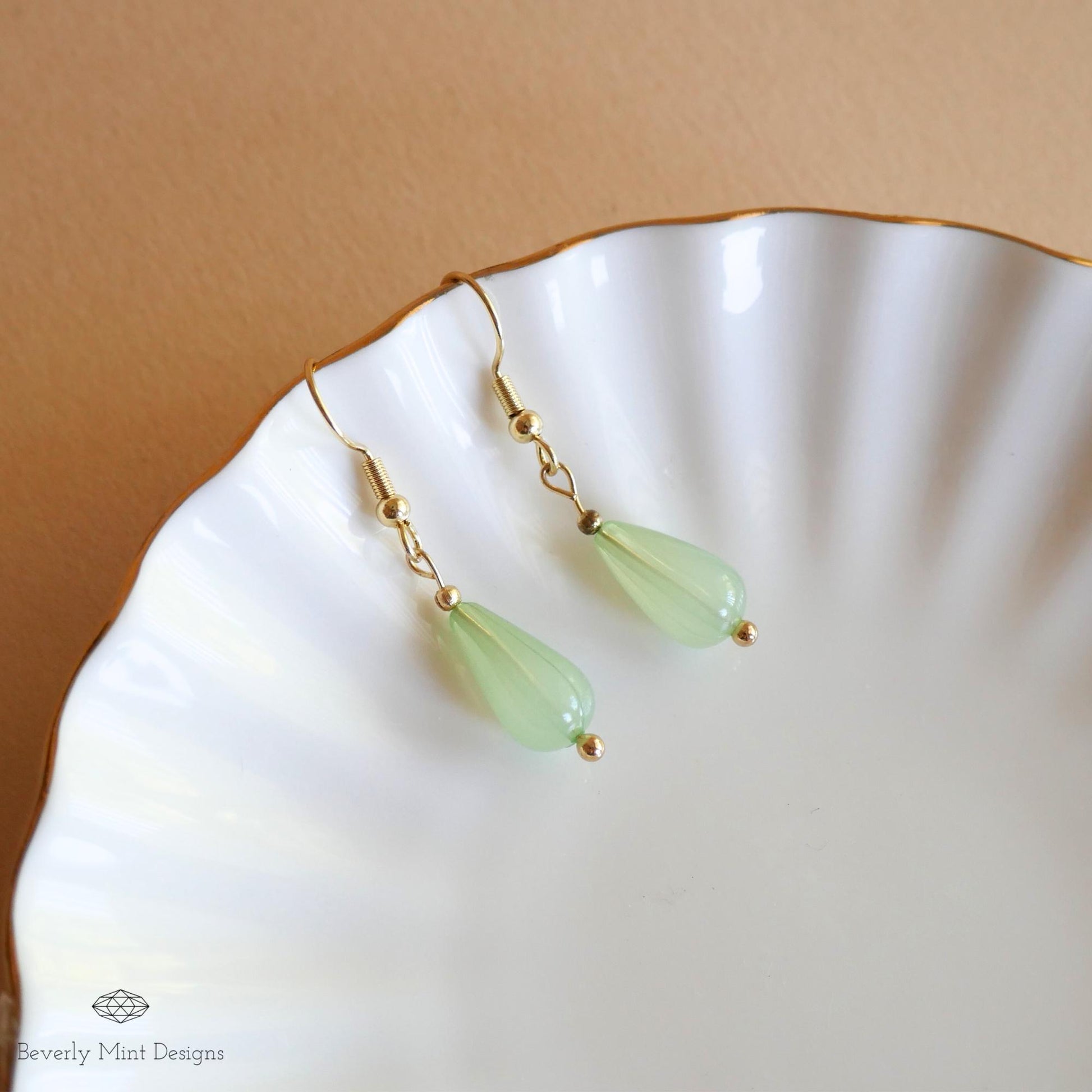 Jade Color Teardrop Earrings, 18K Gold Drop Earrings, Light Green Earrings, Minimalist Earrings Mint Green ,, Gift For Her