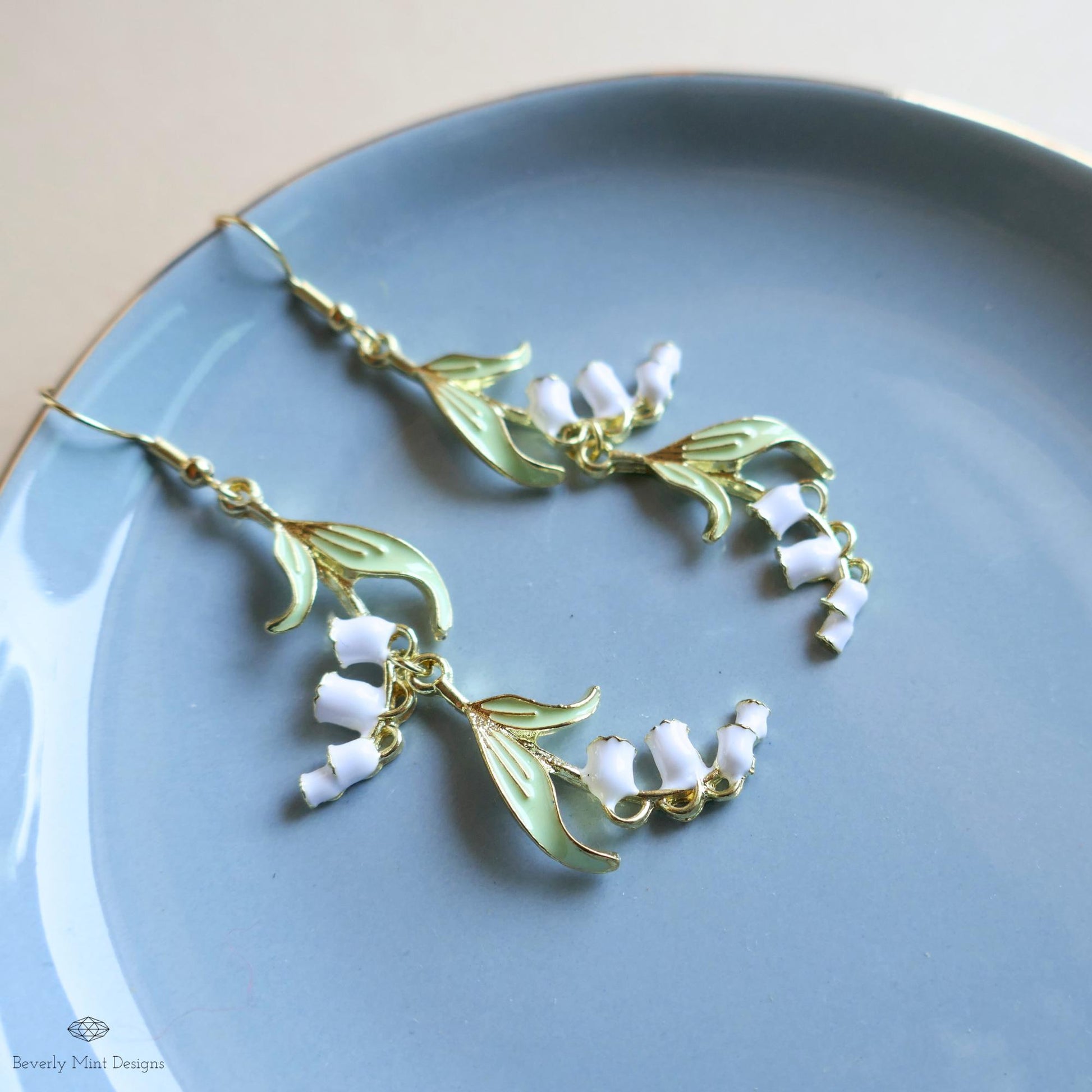 Lily Of The Valley Earrings, Floral Dangle Earrings, Birth Flower for May, Nature Inspired Jewelry, Botanical Earrings, Gift For Her