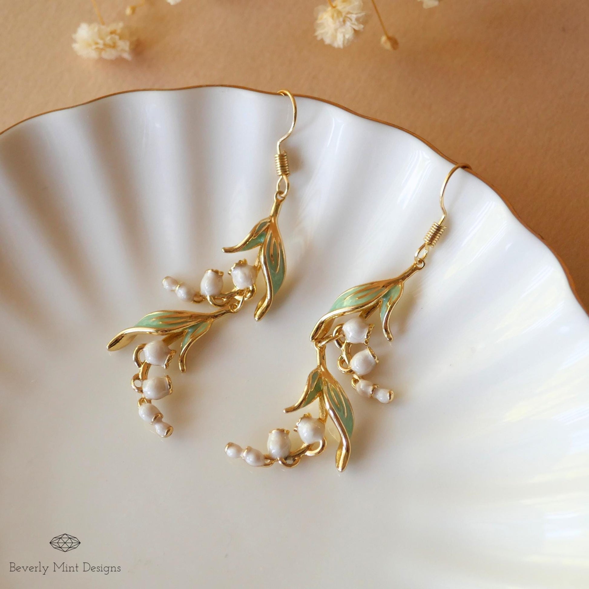 Lily Of The Valley Earrings, Gold Floral Dangle Earrings,Birth Flower for May, Nature-Inspired Jewelry, Botanical Long Earrings, Gift
