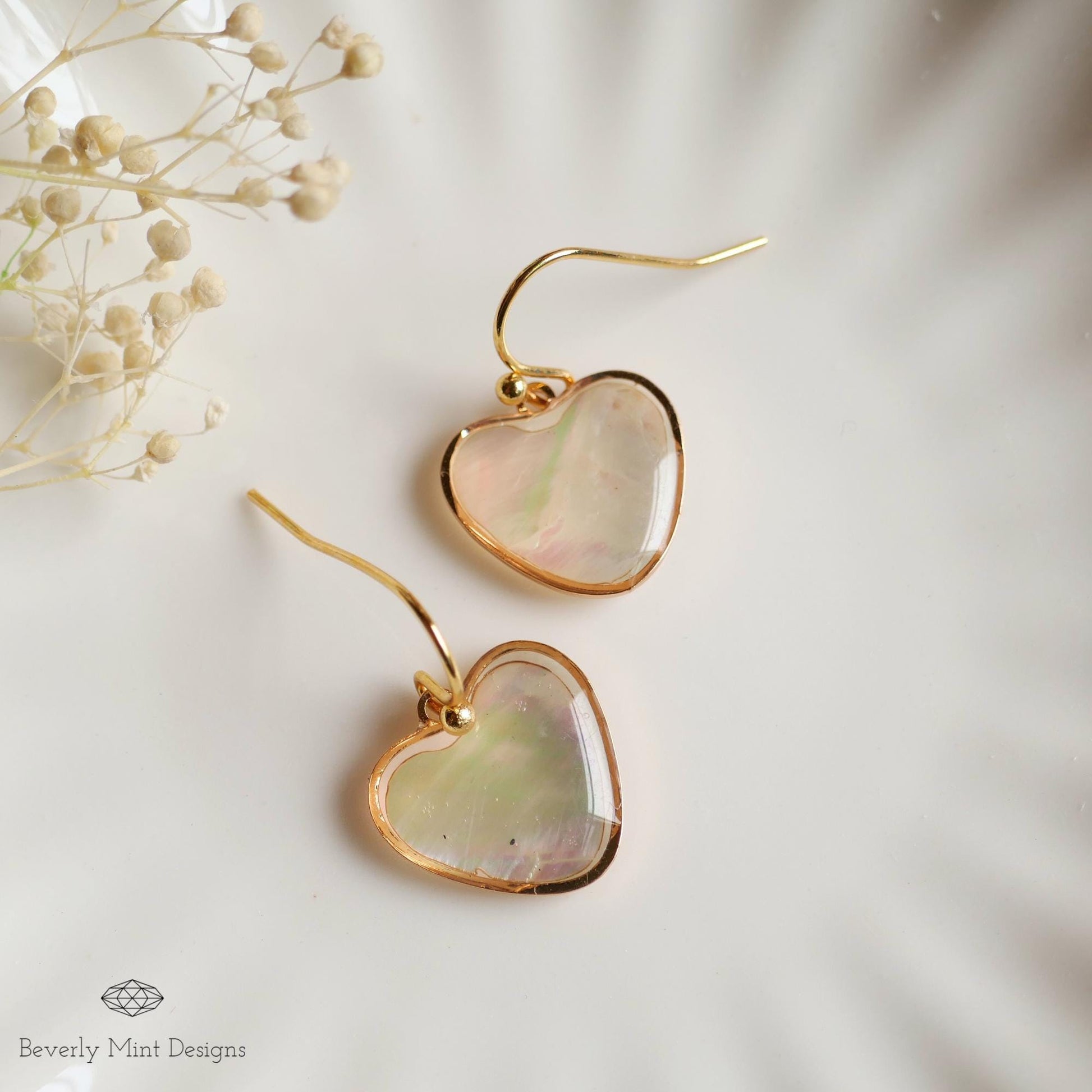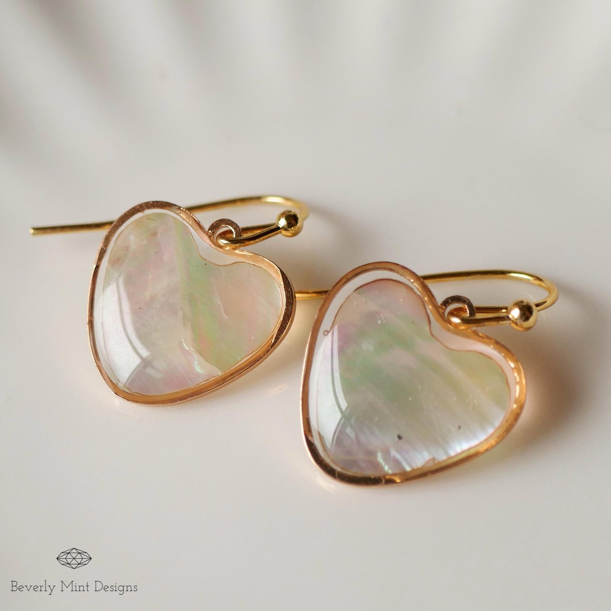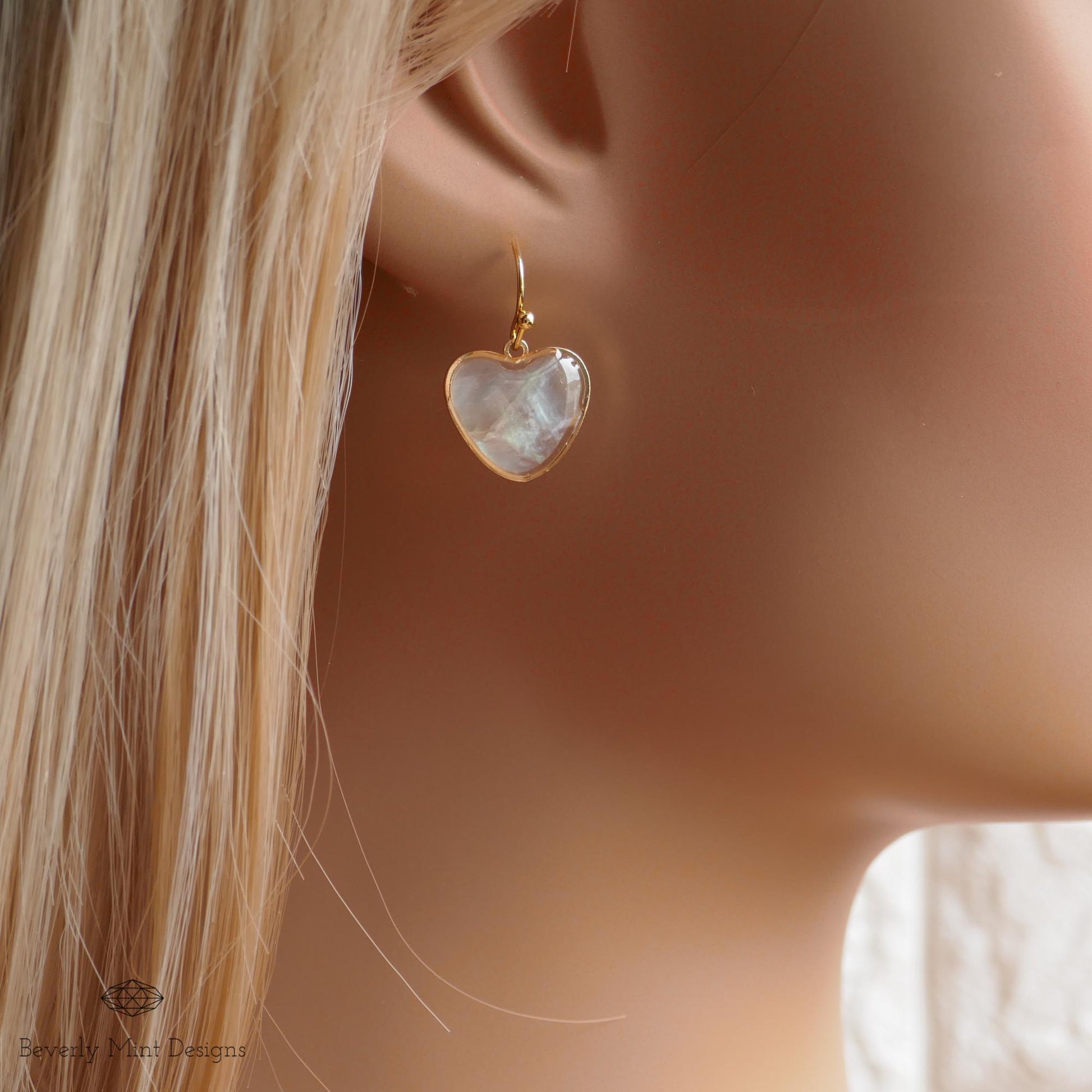 Mother of Pearl Heart Hoop Earrings, Gold Dangle Earrings, Romantic Gift for Her, Minimalist Jewelry, Bridesmaid Earrings