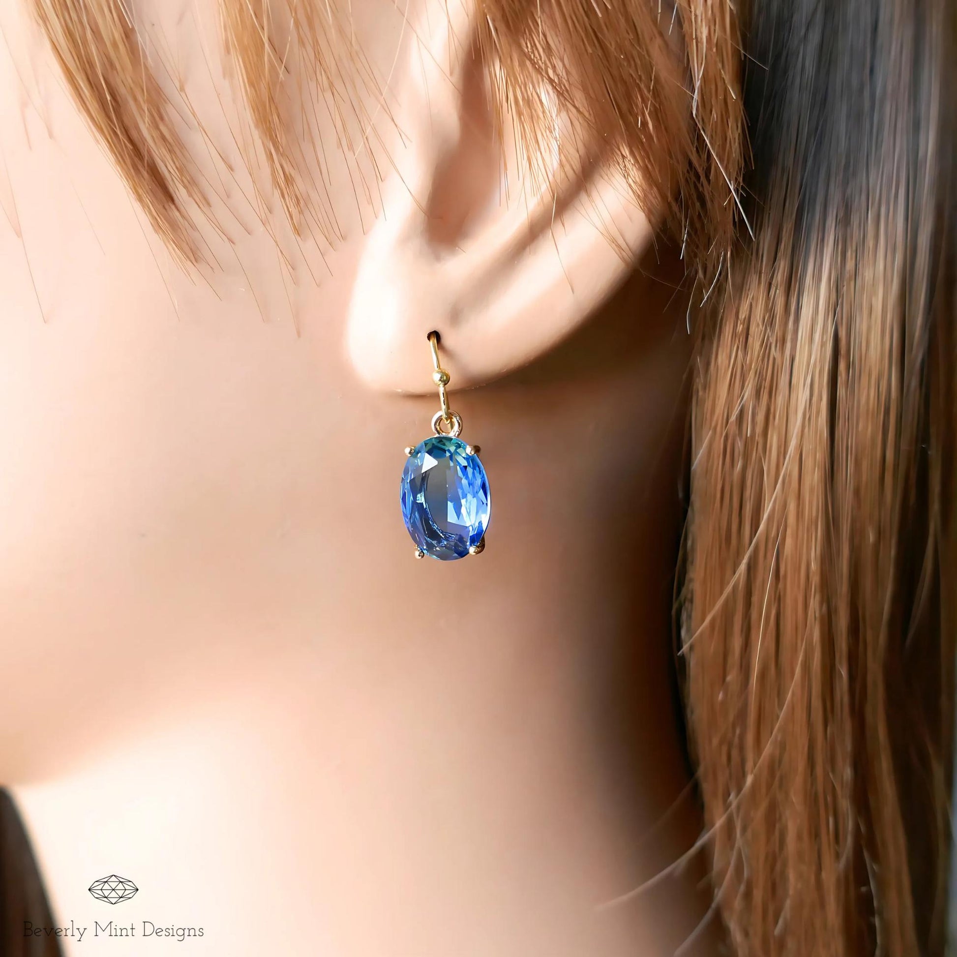 Oval Blue Crystal Drop Earrings, Blue Sapphire-Inspired Crystal Earrings, Elegant Handmade Jewelry, Something Blue Wedding Gift