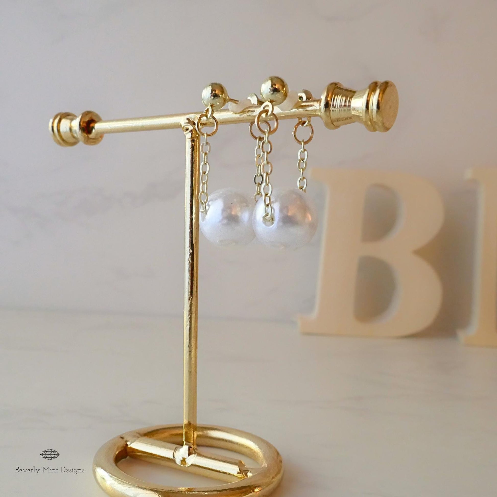 Pearl Earrings, Retro Gold Pearl Drop Earrings , Bride Earrings, Pearl Dangle Earrings, Gift For Her