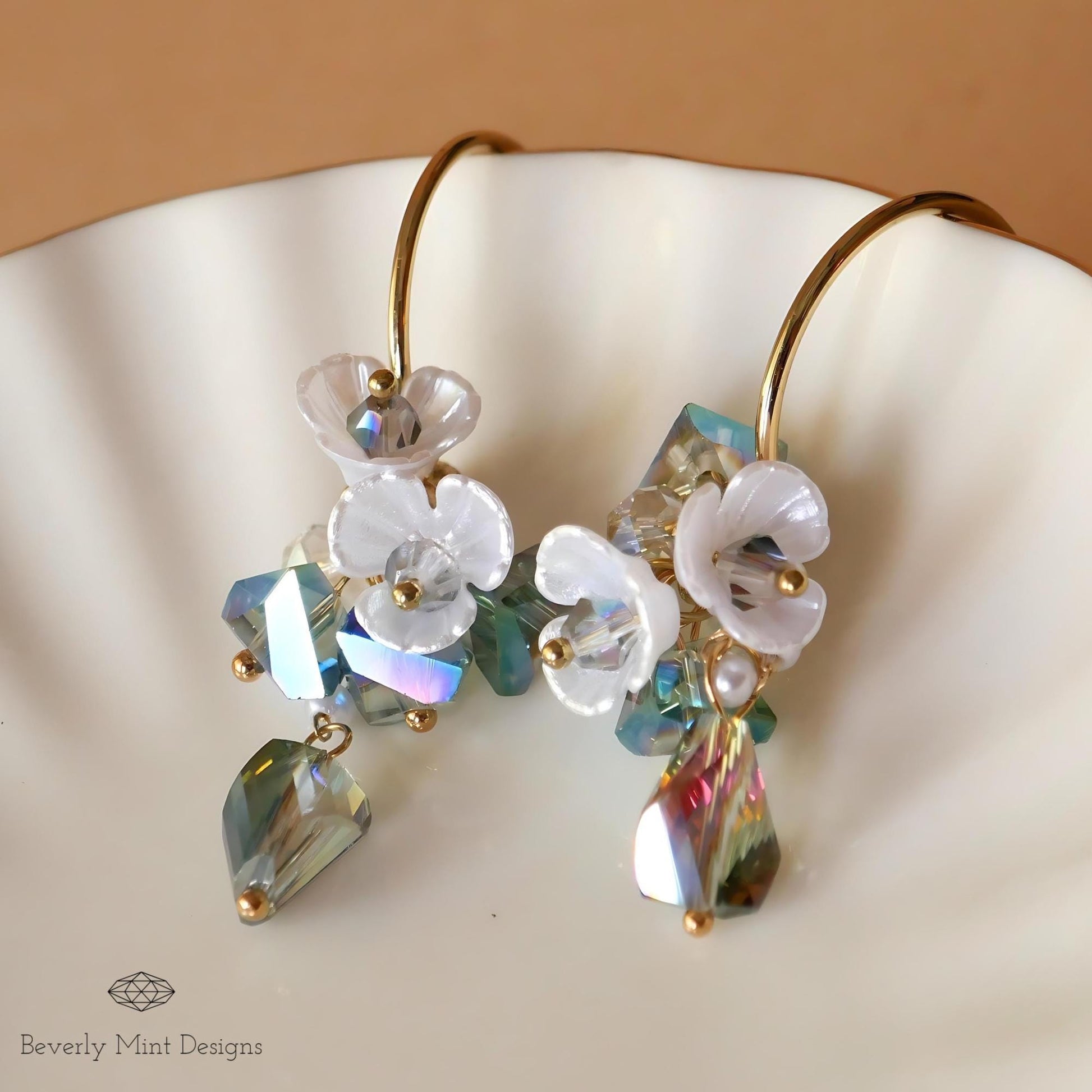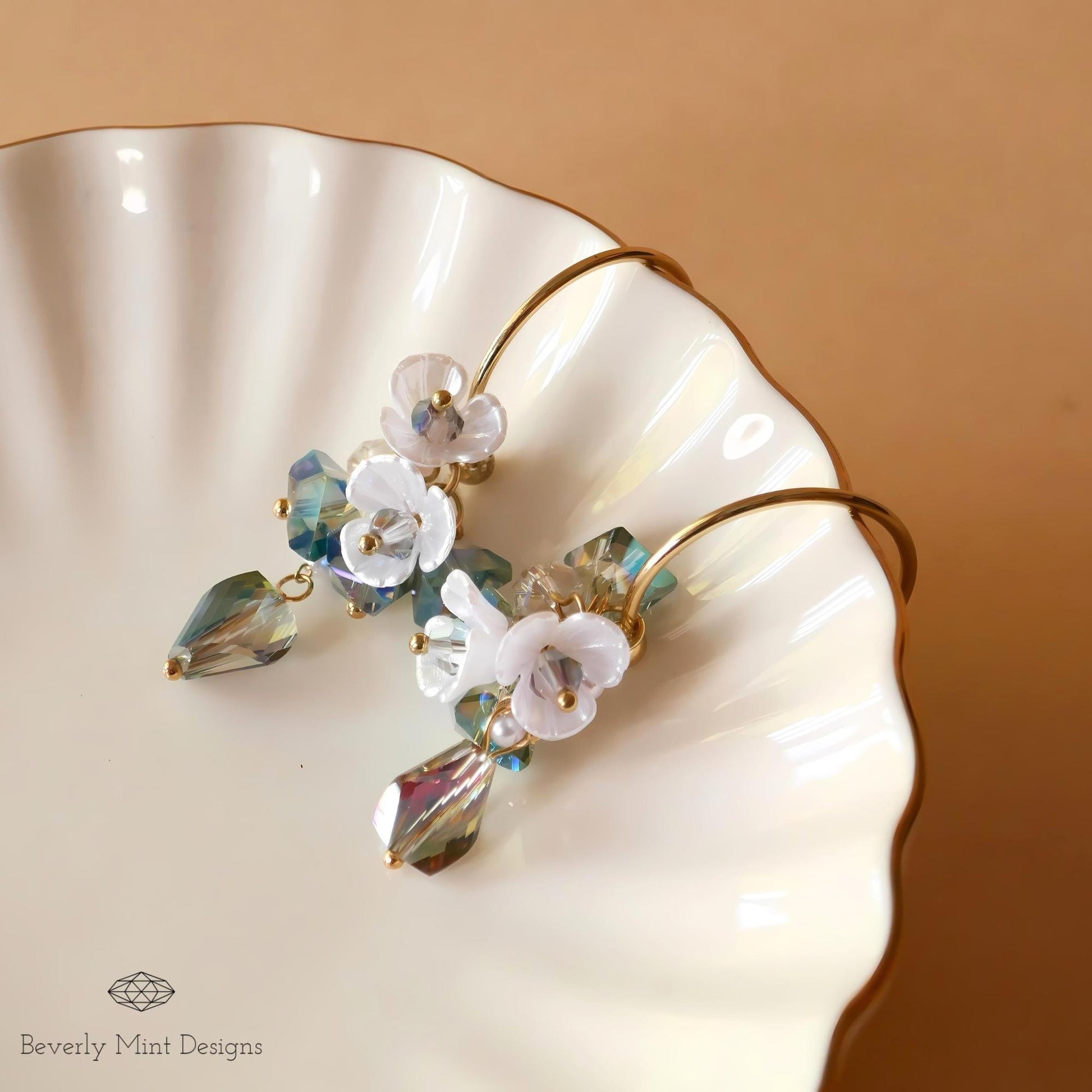 Pearly Flower Earrings, Flower Drop Earrings ,Feminine Earrings, Floral Chandelier Earrings, Unique Jewelry, Gift For Her
