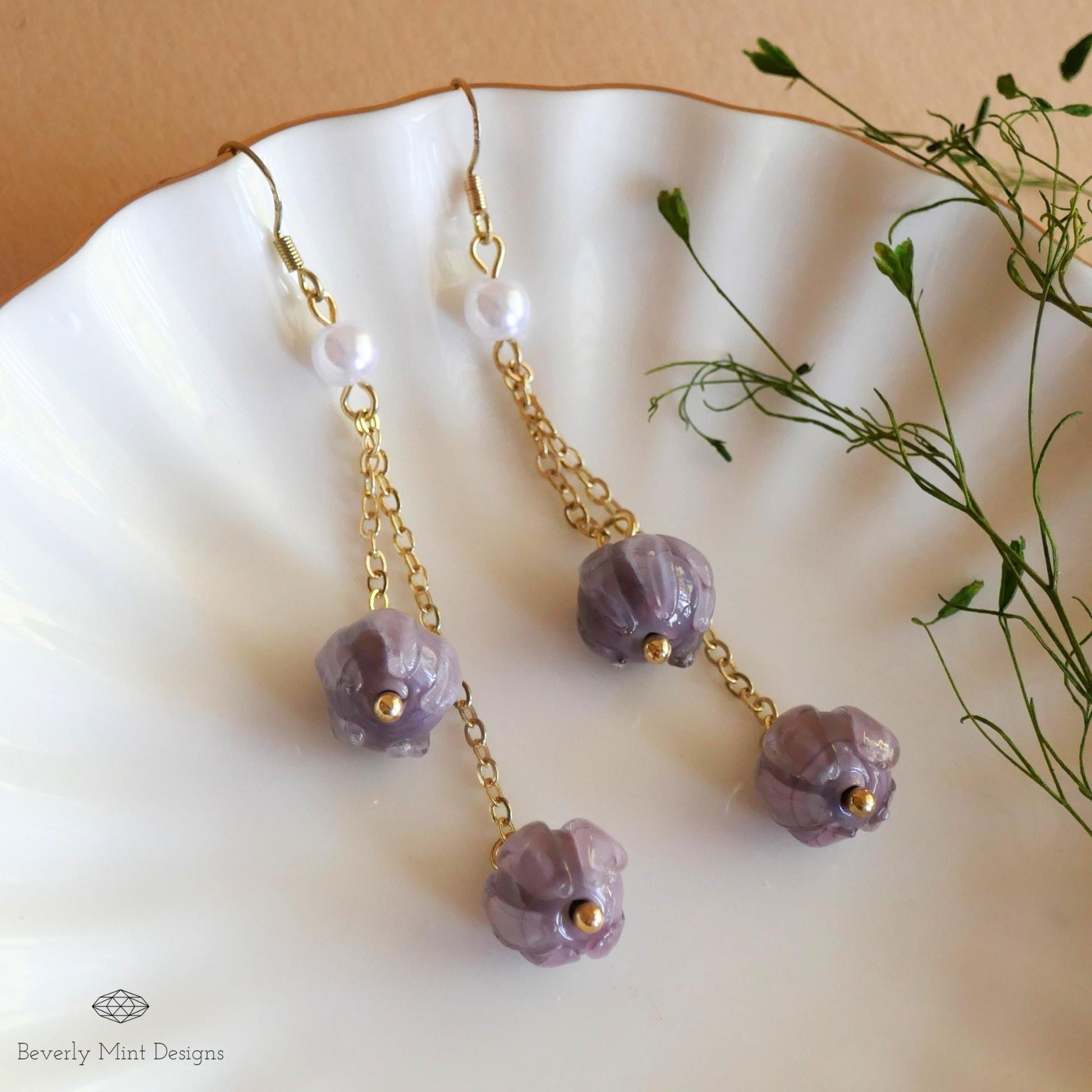 Purple Lily of The Valley, Purple Flower Earrings, Floral Dangle and Drop Earrings, Birth Flower for May ,Unique Earrings