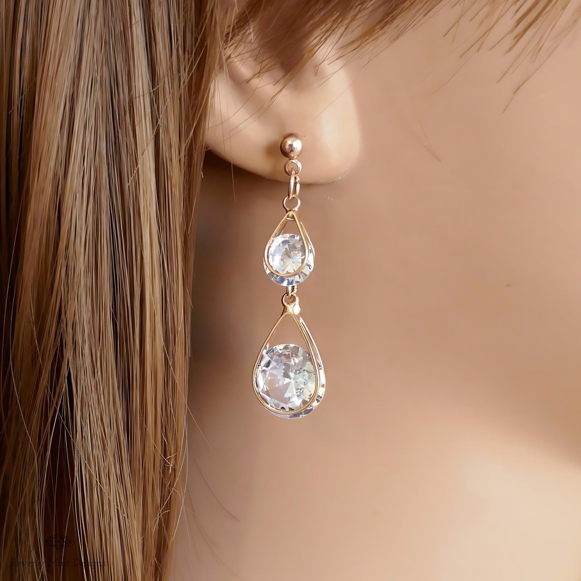 Rose Gold Dangle Earrings, Rose Gold Stud Earrings, Waterdrop Earrings, Statement Earrings ,Bride Earrings, Cubic Zirconia, Gift For Her