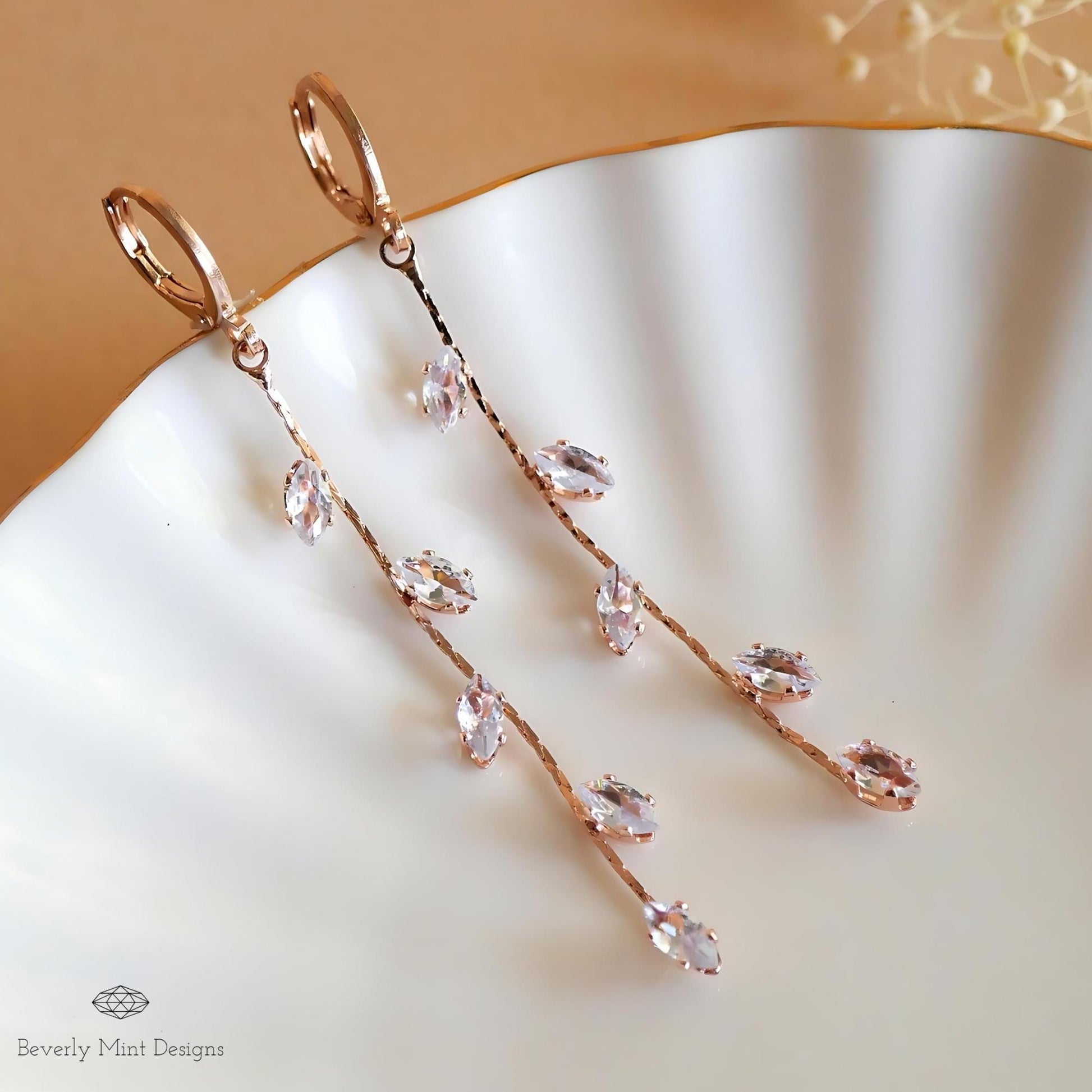 Rose Gold Earrings, Leaves Earrings, Rose Gold Long Dangle Earrings, Leafy Earrings, Bridesmaid Jewelry, Wedding Gift, Gift For Her