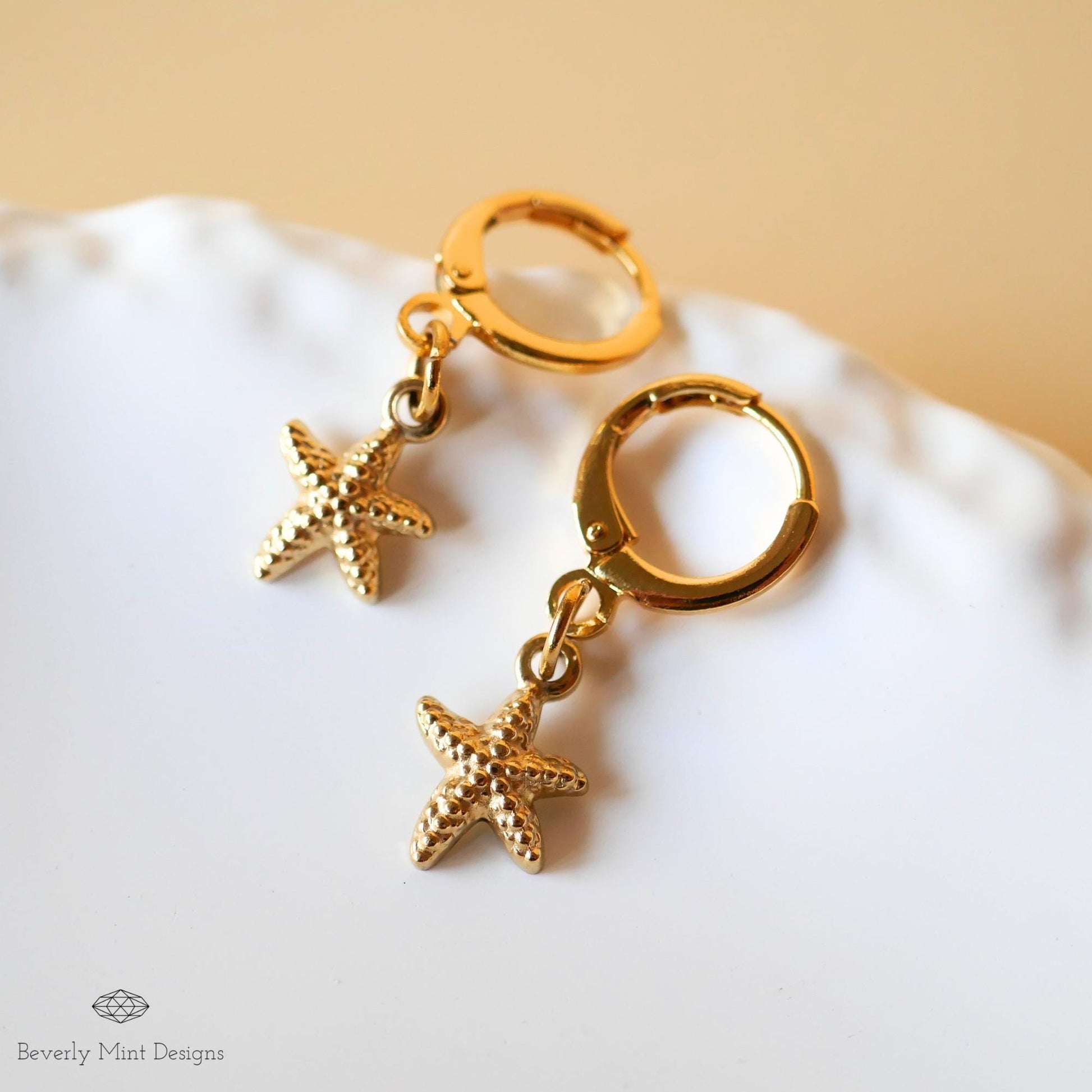 Starfish Earrings, 18K Gold Minimalist Earrings, Beach Earrings, Gift For Her