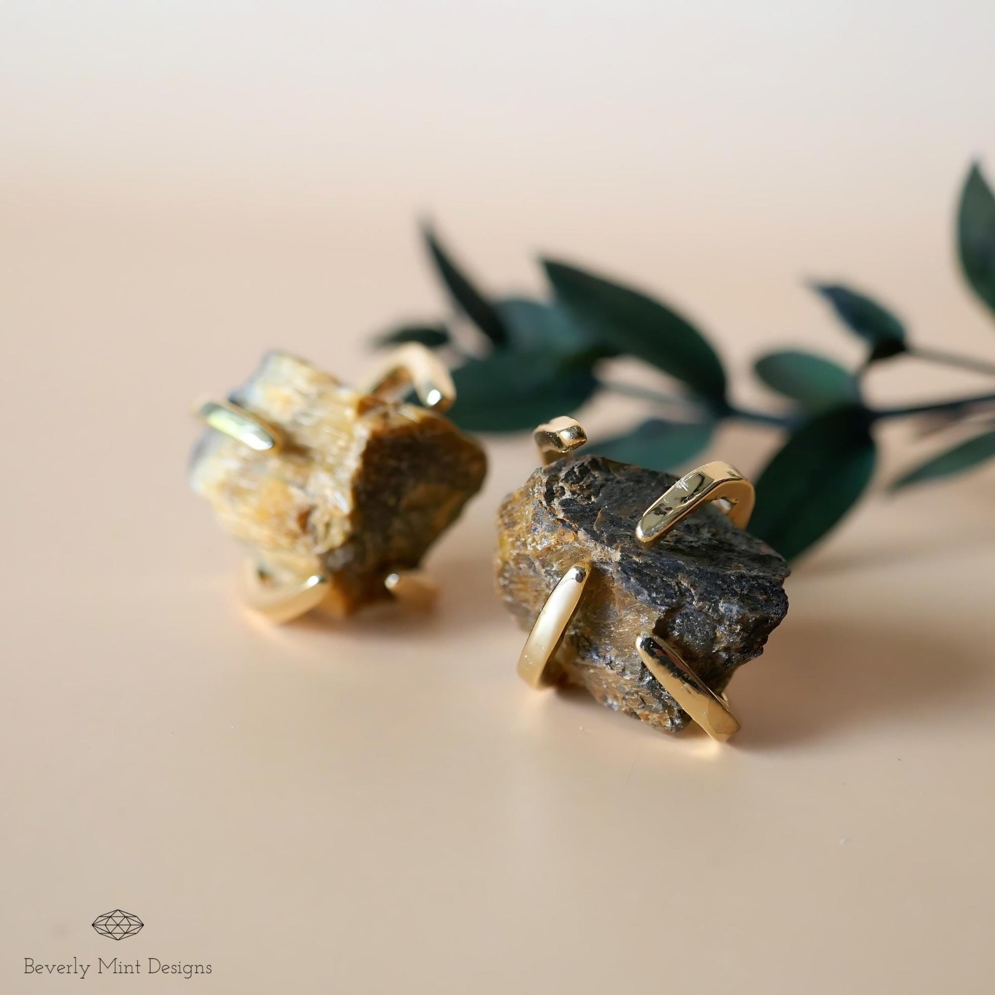 Tiger's Eye Stud Earrings with 18K Gold, Healing Stone Earrings, 1/2 -3/4 inches, Natural Raw Stone Earrings, Chakra Stones