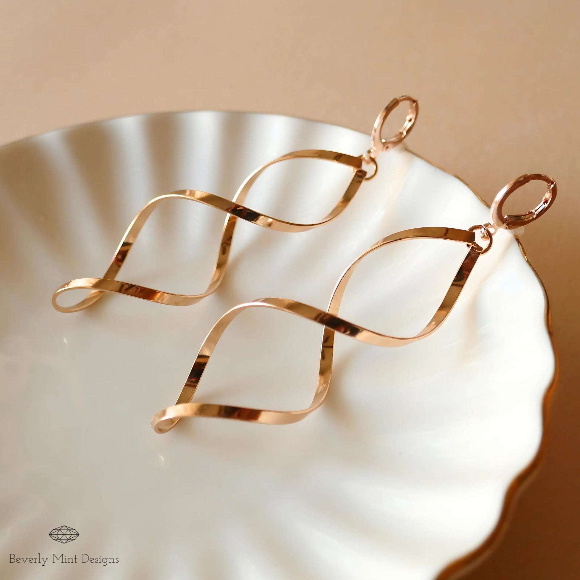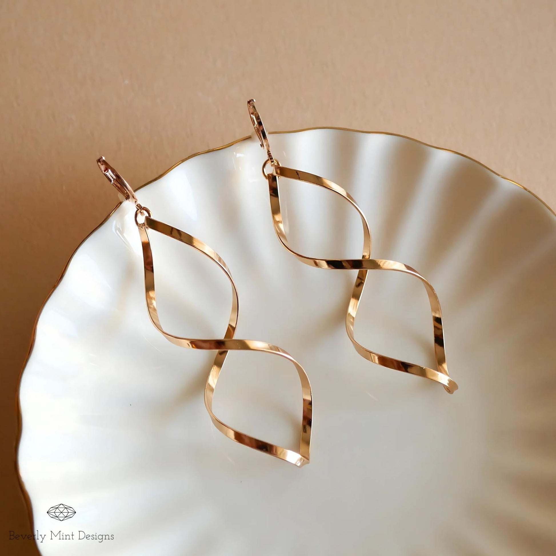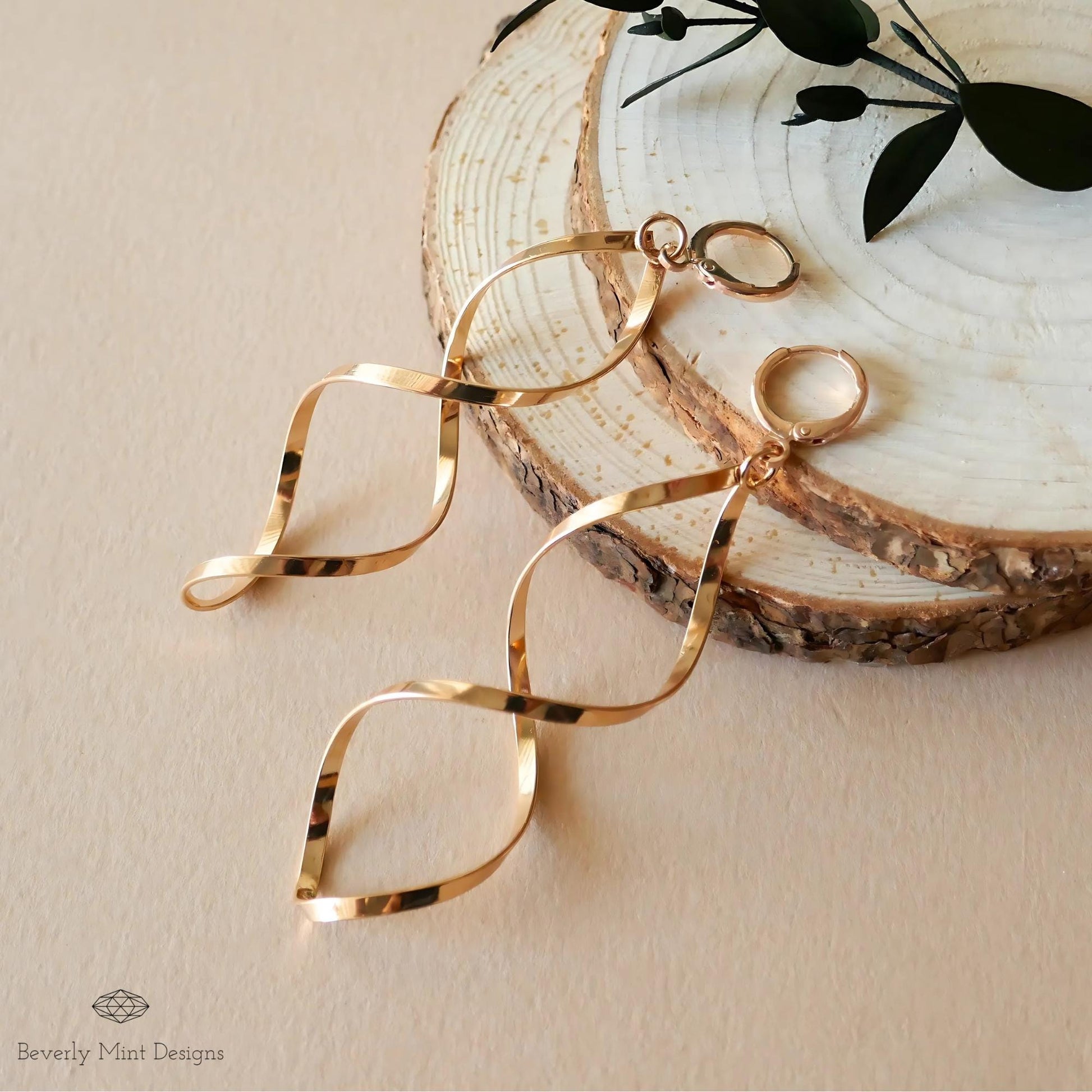 Twirl Earrings, Gold Large Long Earrings, Gold Twisted Earrings, Unique Earrings, Gift For Her