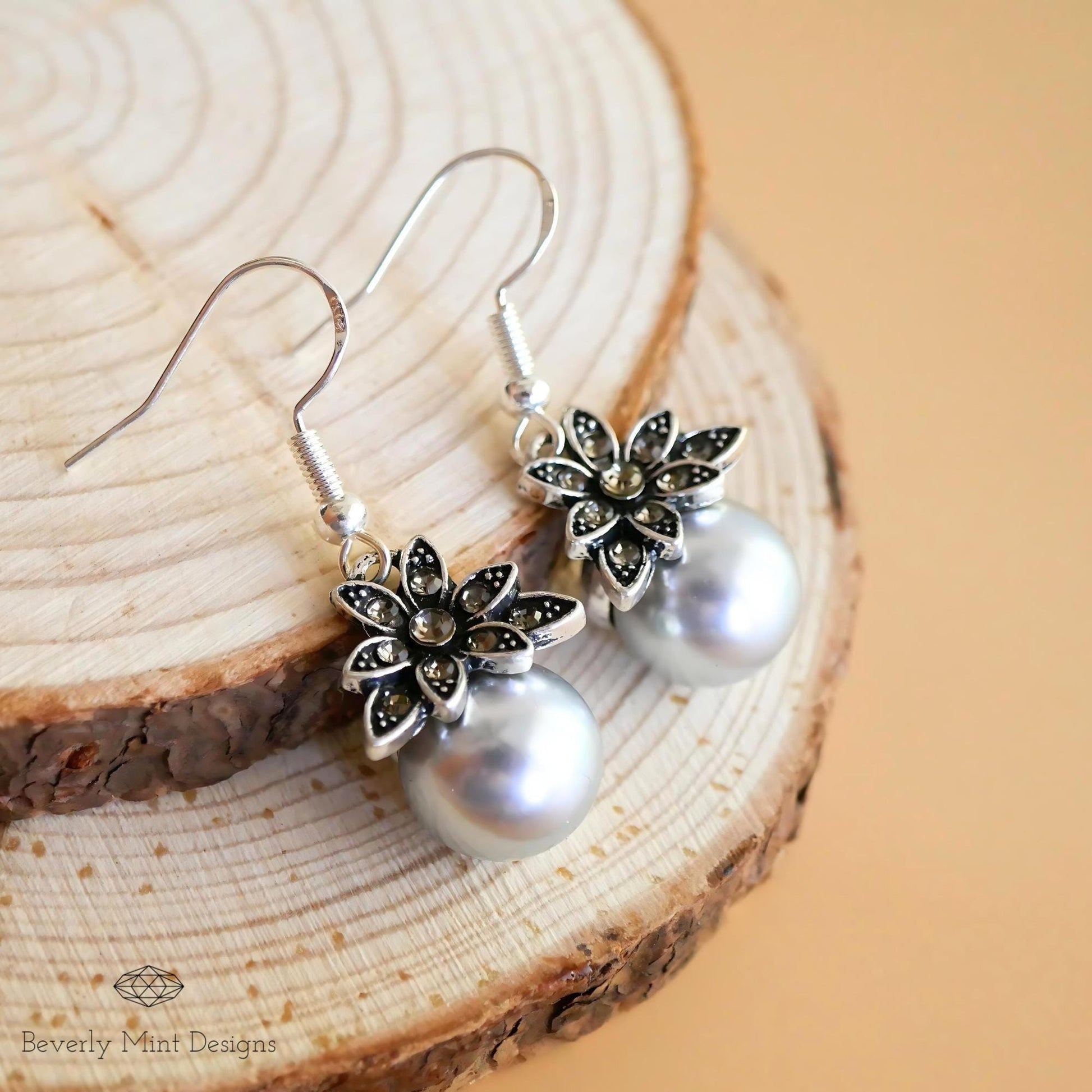 Vintage Gray Pearl Drop Earrings , Large Pearl Dangle Earrings , Gift For Her, Bride, Wedding
