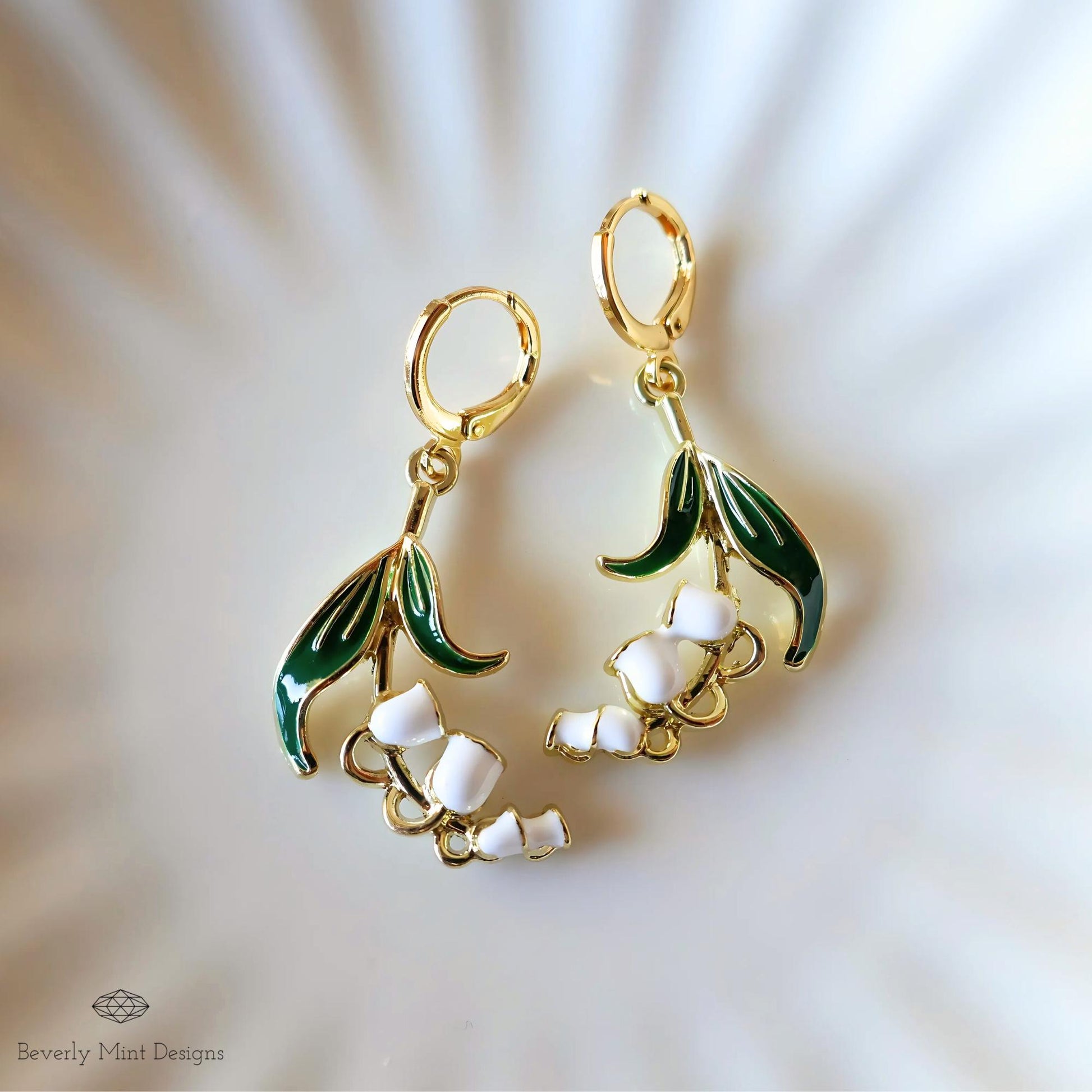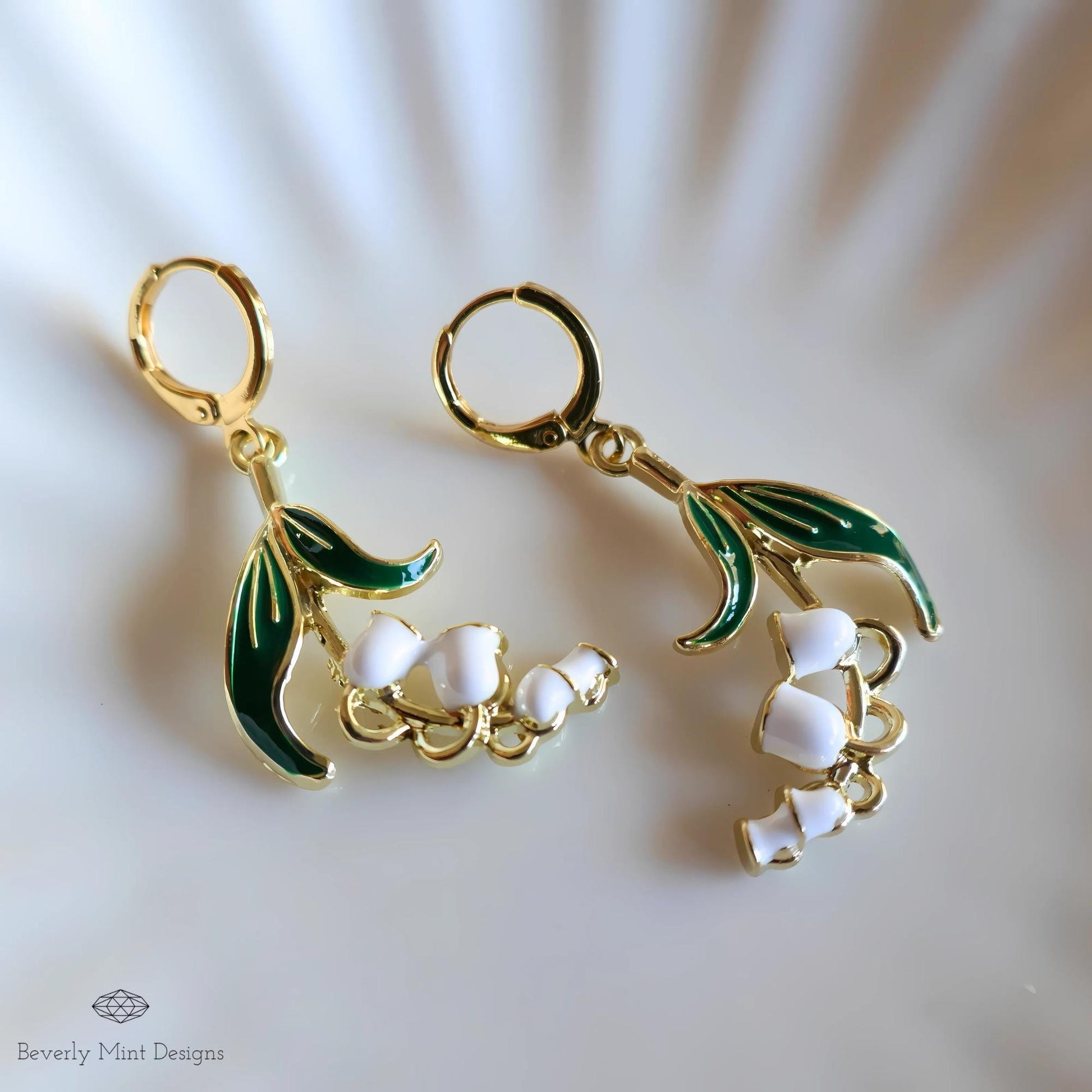 White Lily Of The Valley Flower Drop Earrings, Floral Dangle Earrings, Birth Flower for May , Unique Jewelry , Gift For Her