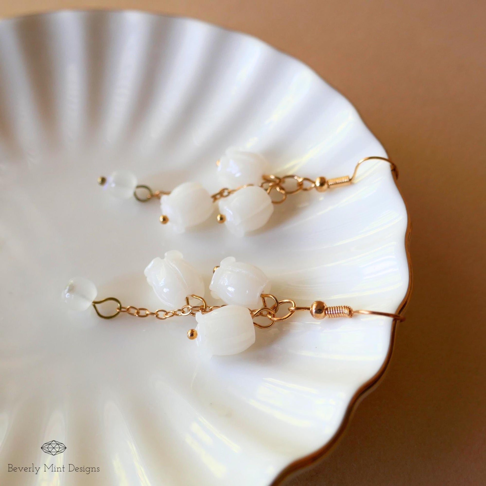 White Lily Of The Valley Flower Earrings, Floral Dangle and Drop Earrings, Birth Flower for May ,Unique Earrings