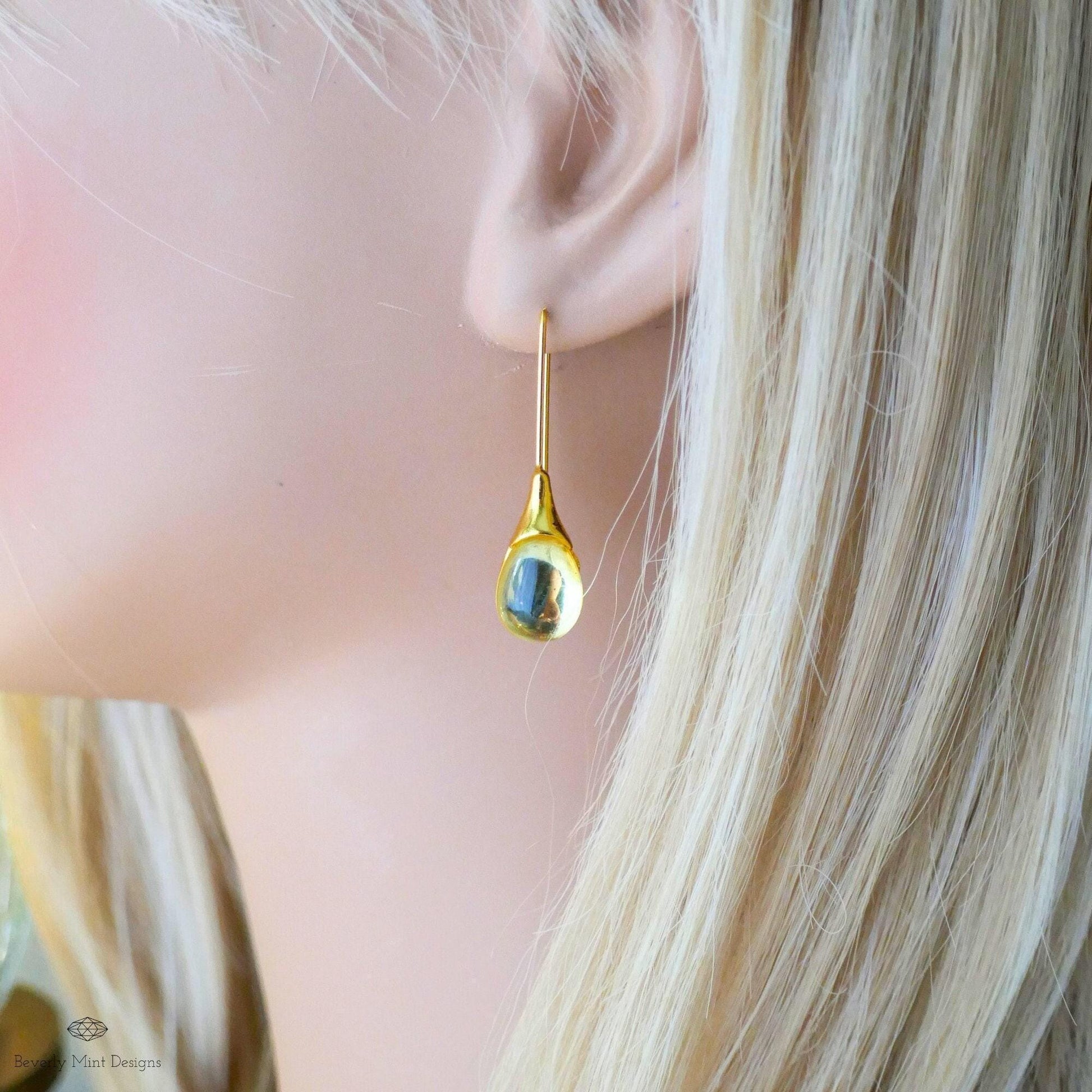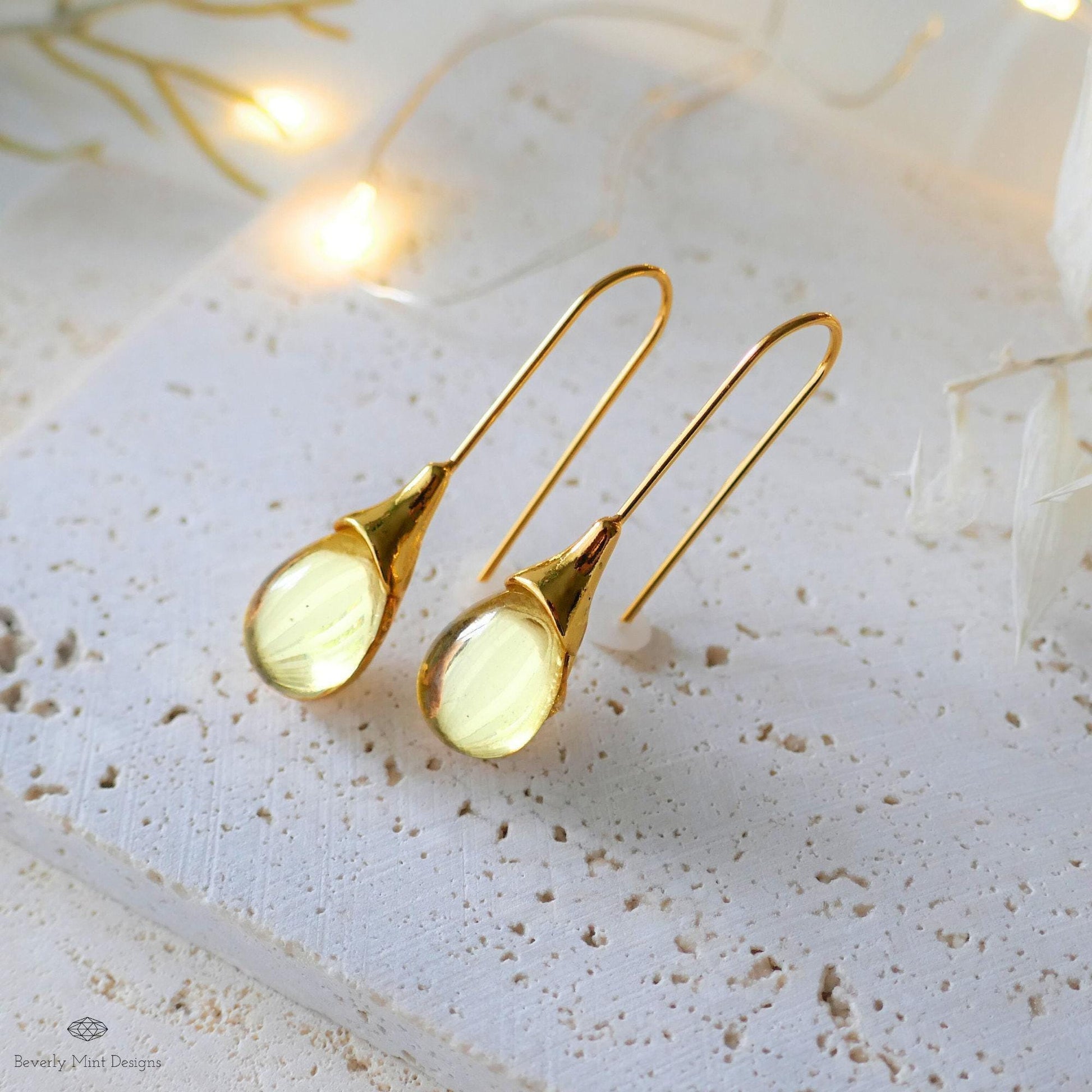 Yellow Teardrop Earrings, Gemstone Earrings Yellow Drop Earrings, Yellow Dangle Earrings, Yellow Waterdrop Earrings,Mother's Day Gift